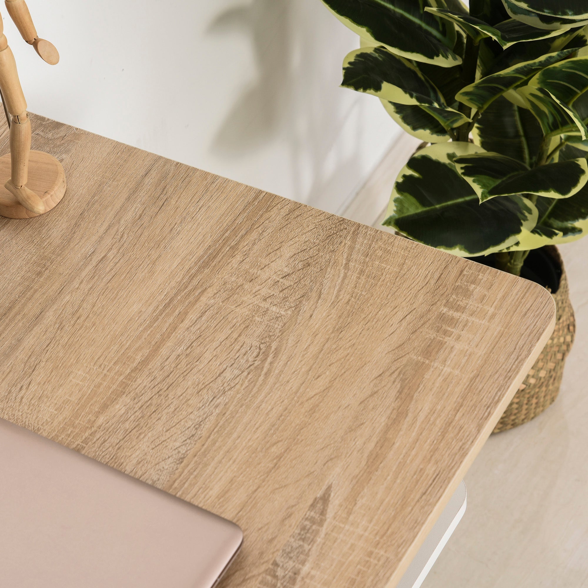 • - VERSATILE: Modern style desk in oak wood color with white details and rounded edges, easily blends with any decor style, seamlessly integrating into your home decoration. The best choice for study, office, bedroom, dining room, etc.