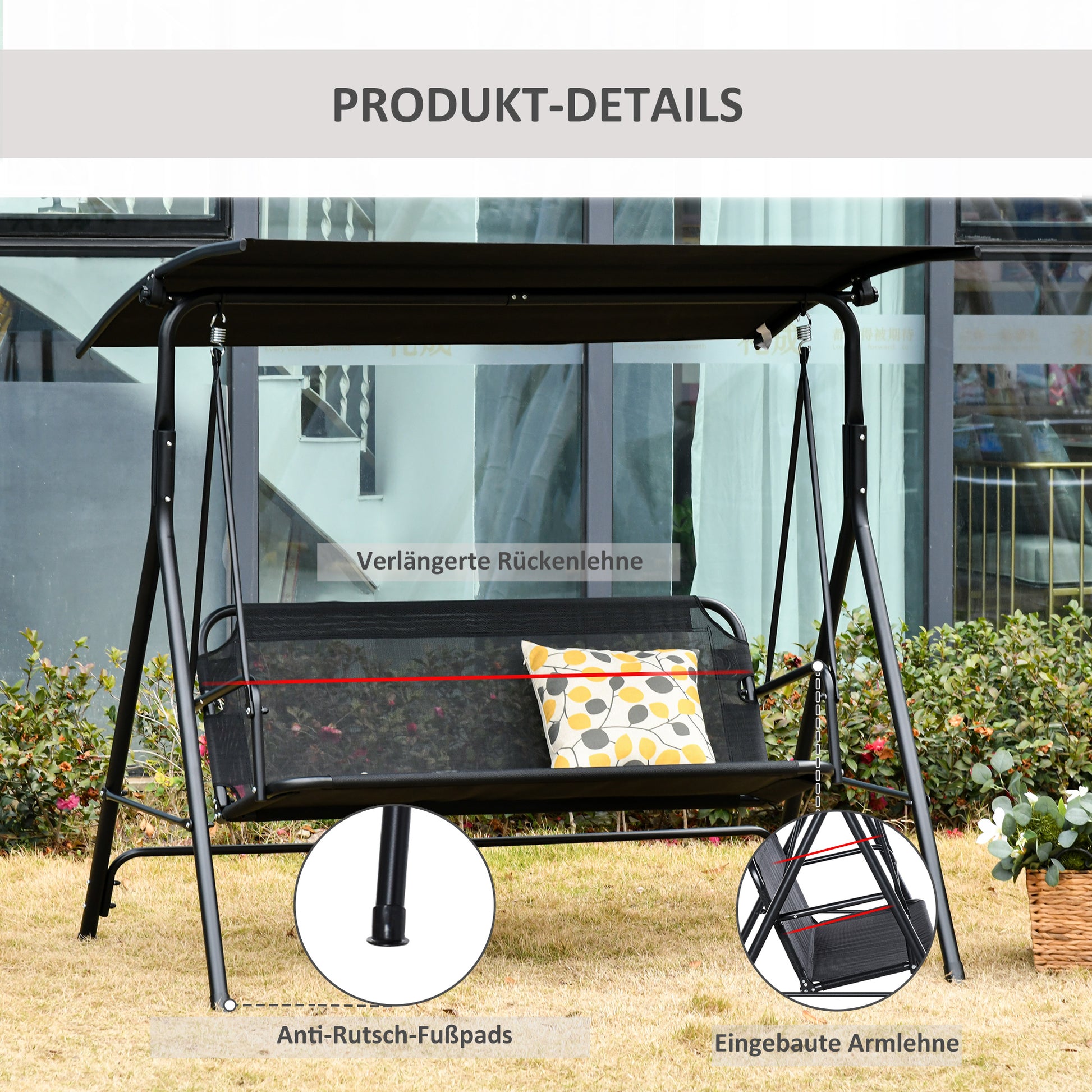 2-Seater Hollywood Swing Chair Outdoor Lounger UV-Resistant High-Quality Metal Tube Adjustable Angle Black