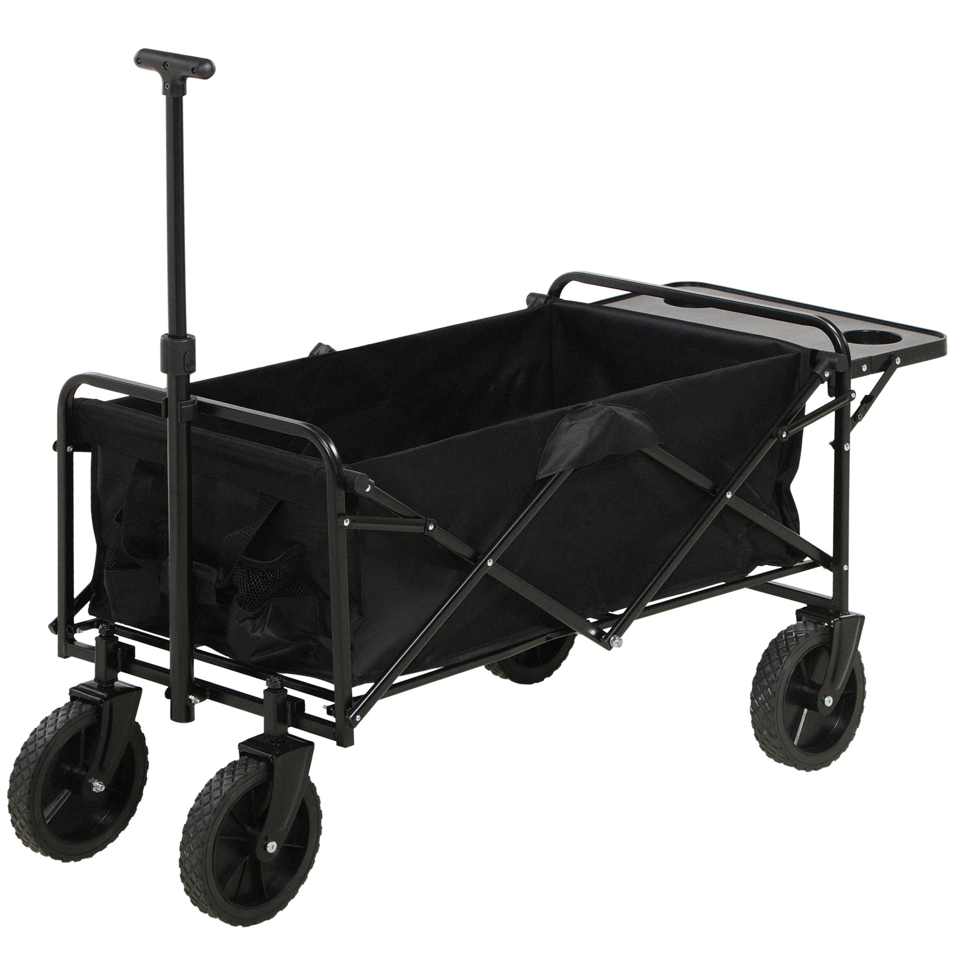 - - FOLDABLE DESIGN: This cart can be quickly folded with a handle, and fit into any standard car trunk for storage or be carried with its handle. Additionally, there is a foldable tray that can be used as a small outdoor table.