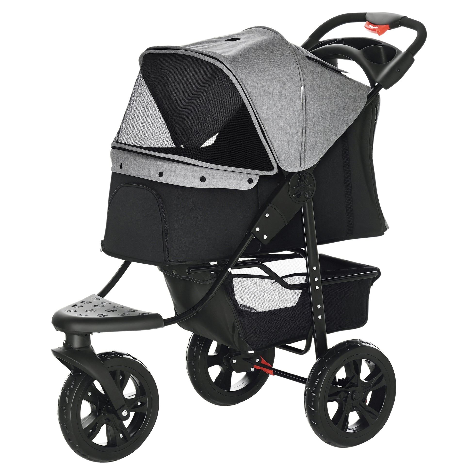 Folding Pet Stroller Dog Buggy for Dogs & Cats up to 10 kg Cat Buggy with Mesh Windows Cup Holder Storage Basket Cat Stroller Buggy Grey