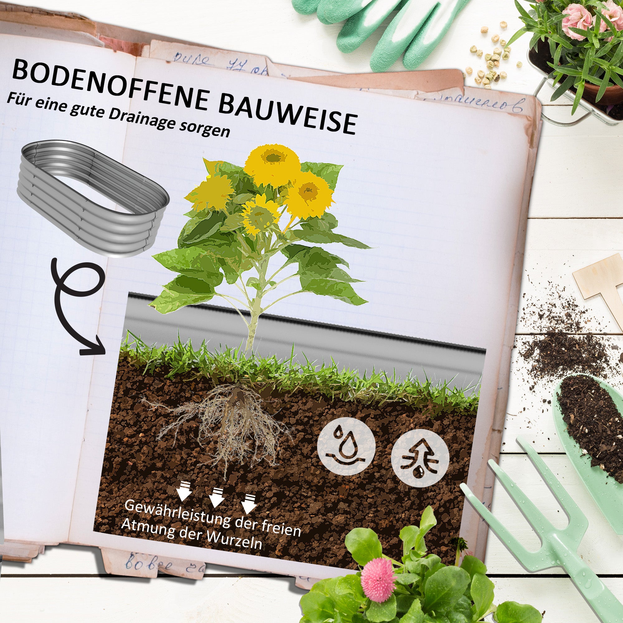 Whether you want to arrange different plant and flower varieties or you have limited space on your terrace or balcony and want to create your own garden, the Outsunny raised bed is the perfect choice. The extra deep side walls and open bottom allow you to grow vegetables with long roots without worrying about waterlogging. Get more than just a flower box and keep your garden tidy with Outsunny.