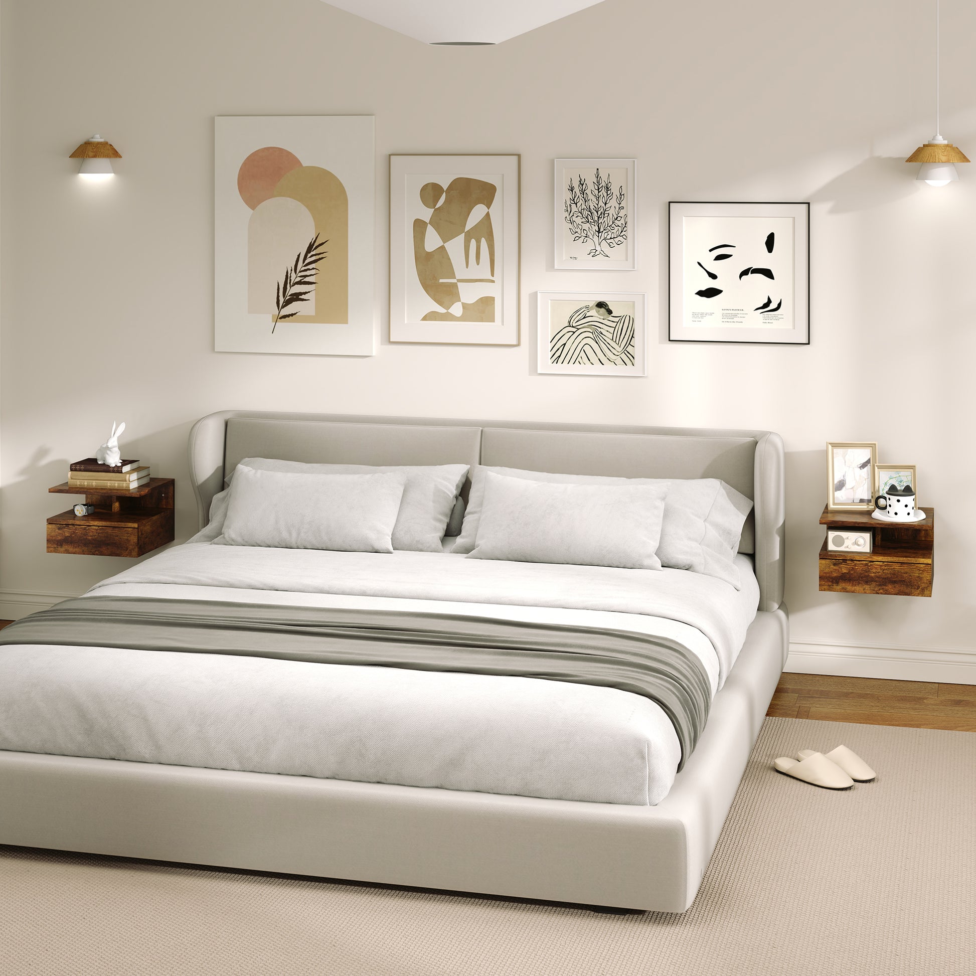 • - BEDSIDE TABLES WITH DRAWER: the pull-out drawer provides a practical space to discreetly store your personal items, while the wall-mounted bedside table shelf allows you to place books, photos, and decorations