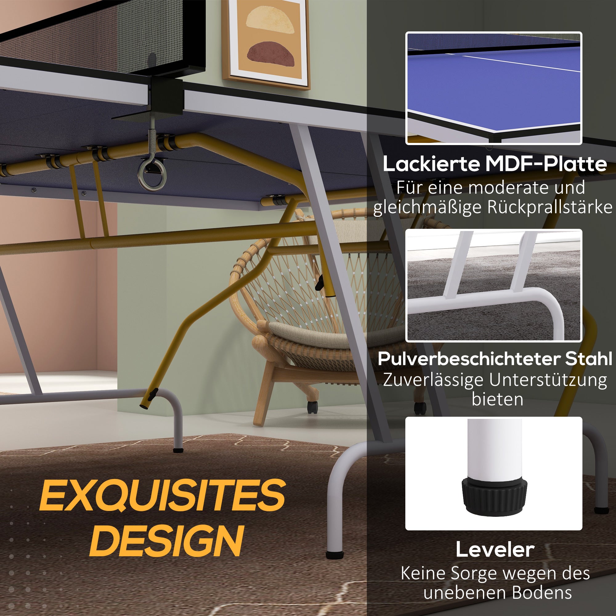 • - Versatile uses: With a sturdy steel frame that supports up to 50 kg and a removable net, this table tennis table can be used not only for table tennis, but also as a dining table for spontaneous snacks or a game table for board games - versatile fun for the whole family