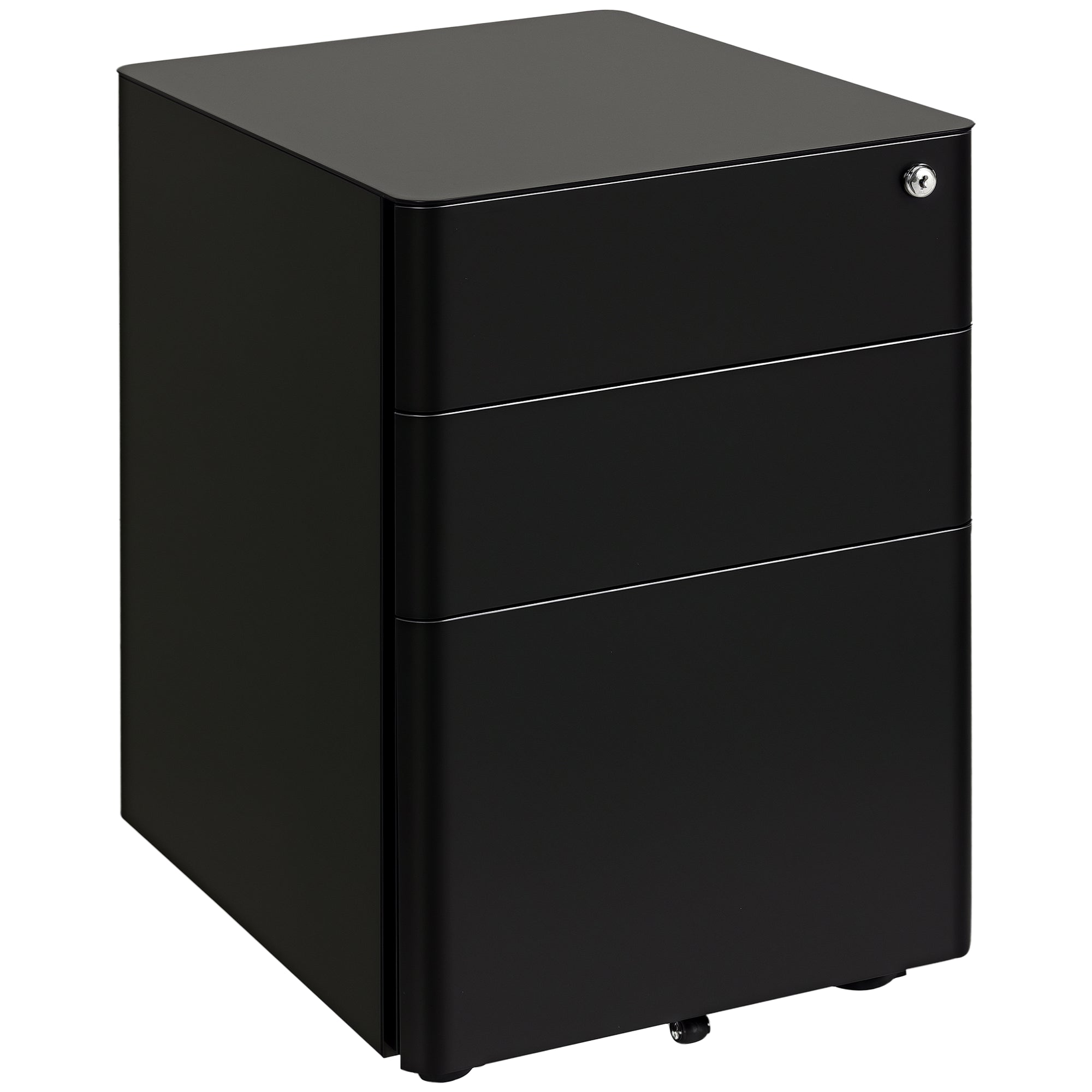 Filing Cabinet, Mobile Filing Cabinet with 3 Drawers, Lockable Office Cabinet with Hanging File Folder, Storage, Steel, 39 x 48 x 59 cm Black