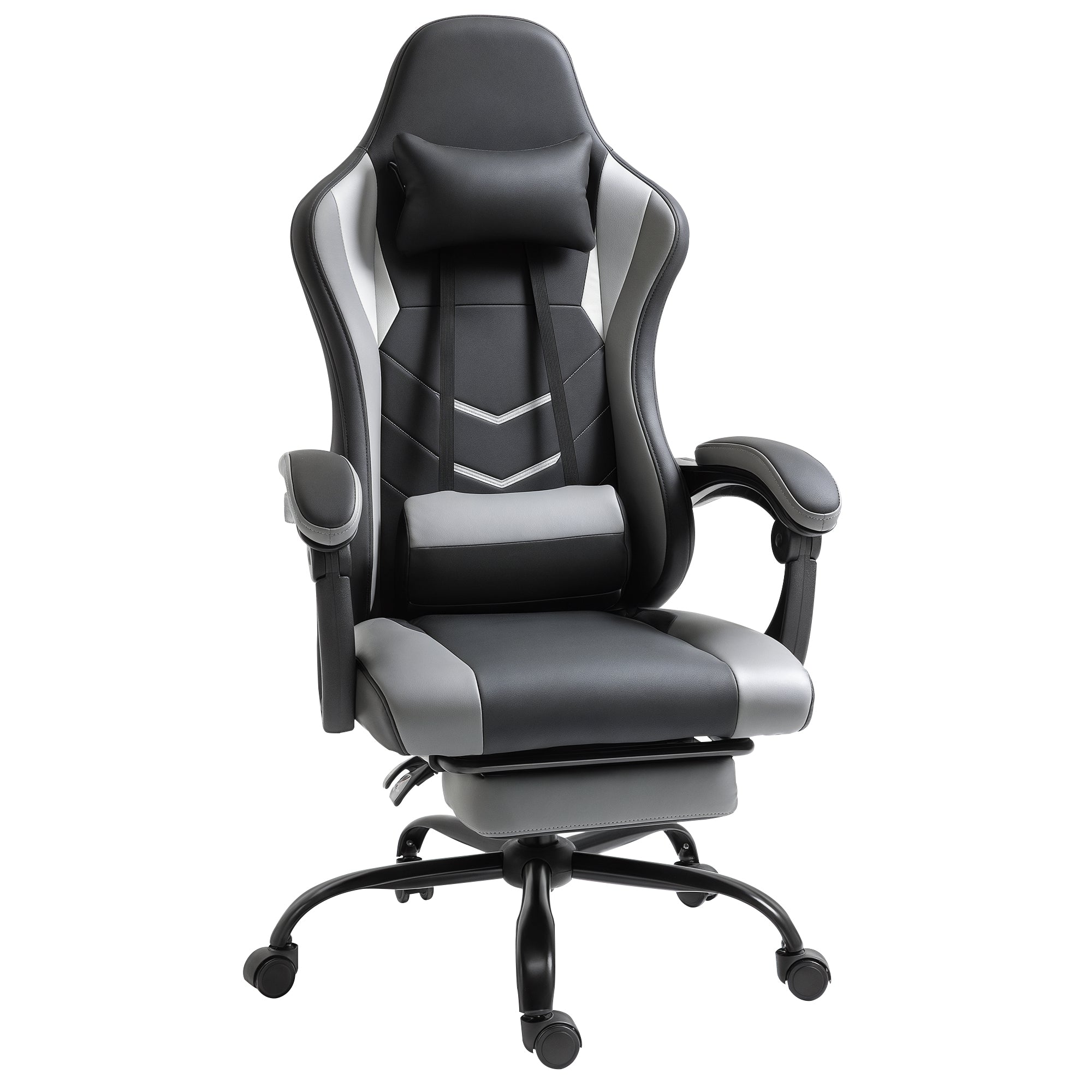 Office Chair, Ergonomic Desk Chair with Headrest, Lumbar Pillow, Height Adjustable Gaming Chair with Footrest, High Backrest, Gray 62 x 68 x 117-127 cm