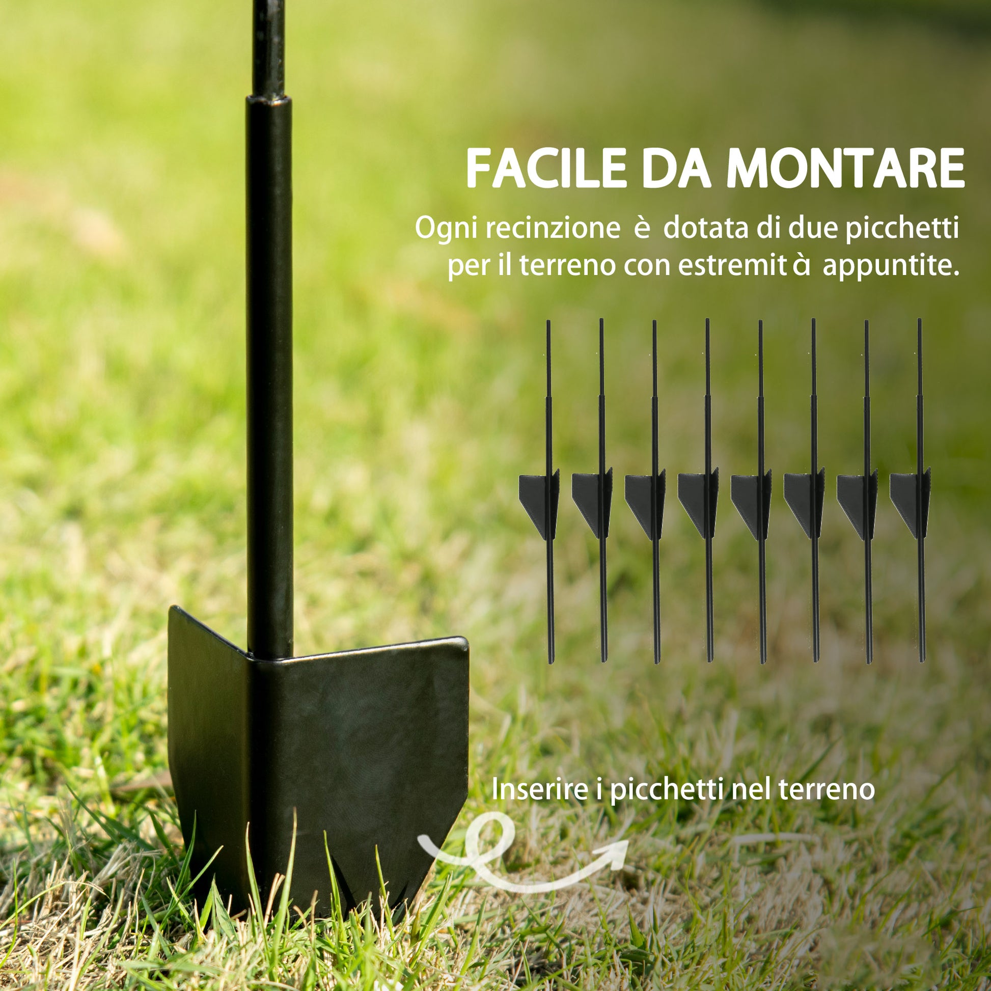 4-Panel Garden Fence with 8 Ground Stakes, Outdoor Steel Fence, 348x110 cm, Black