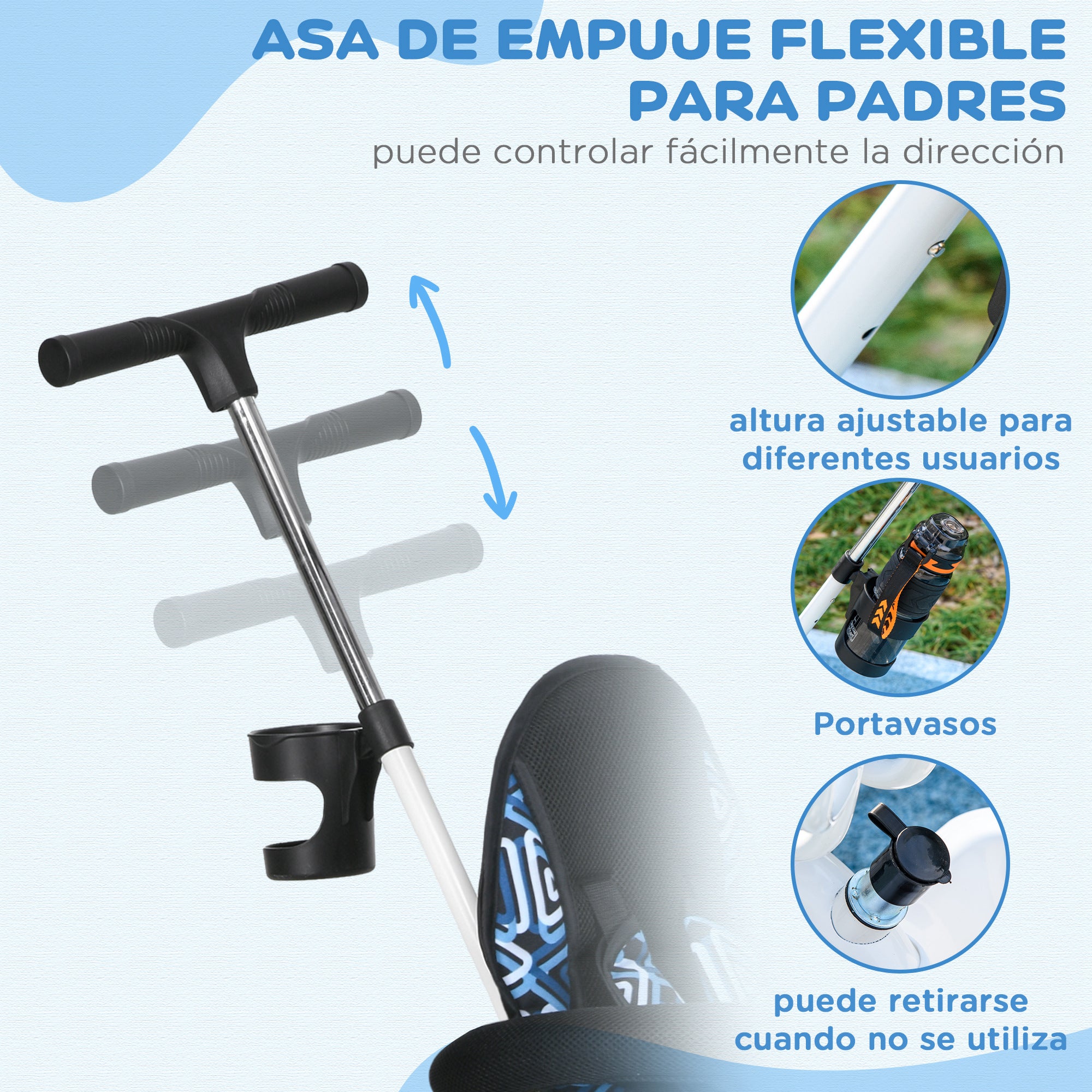 Baby Tricycle 6 in 1 Evolutionary Tricycle for Kids +12 Months with Foldable Canopy Telescopic and Detachable Push Handle Adjustable Seat Basket and Bottle Holder Blue and White