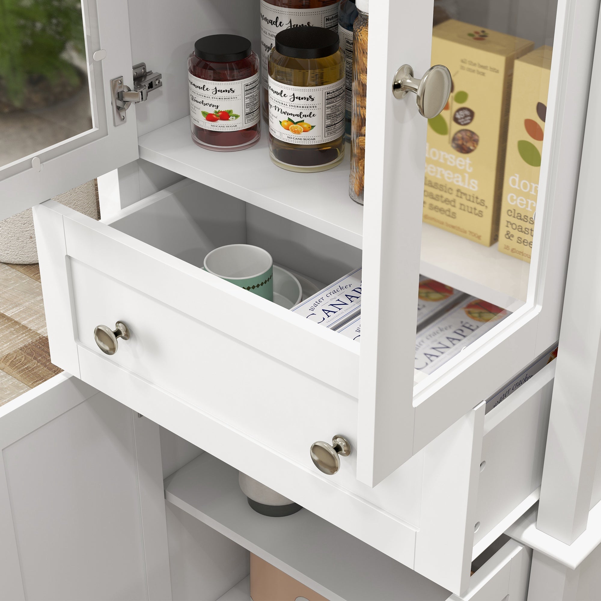 Kitchen Pantry Cabinet Kitchen Cabinet with 2 Tempered Glass Doors Drawer and Adjustable Shelves Sideboard for Dining Room 61x35x168.5 cm White