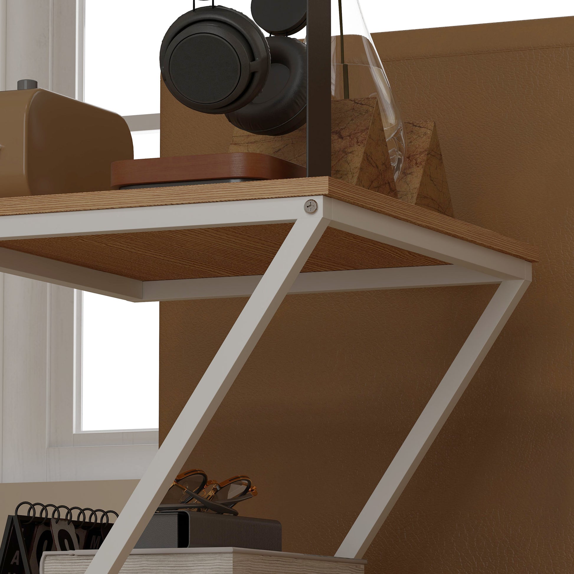 Set of 2 Side Tables for Living Room Z-Shaped End Tables with Drawer and Compartment Side Table for Living Room Bedroom 40x35x50 cm Natural Wood