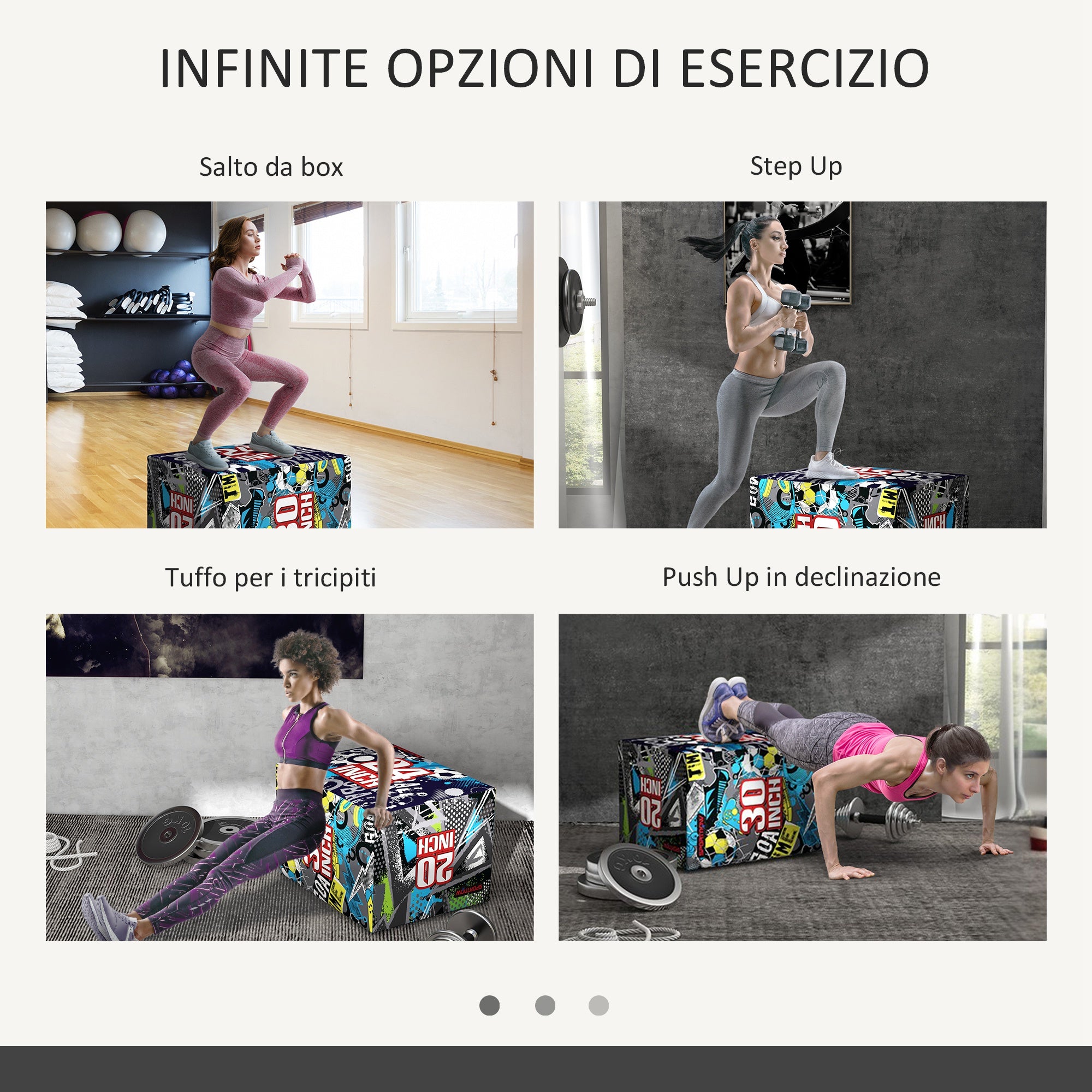 Training at home or in the gym is now easier than ever with the SPORTNOW plyo box! Thanks to the 3 different heights, you can perform many exercises with different training levels. The plyometric box is sturdy, has a soft surface that prevents the risk of scratches, and is non-slip, for jumping in total safety. Get ready to complete your workout with our jumping box.