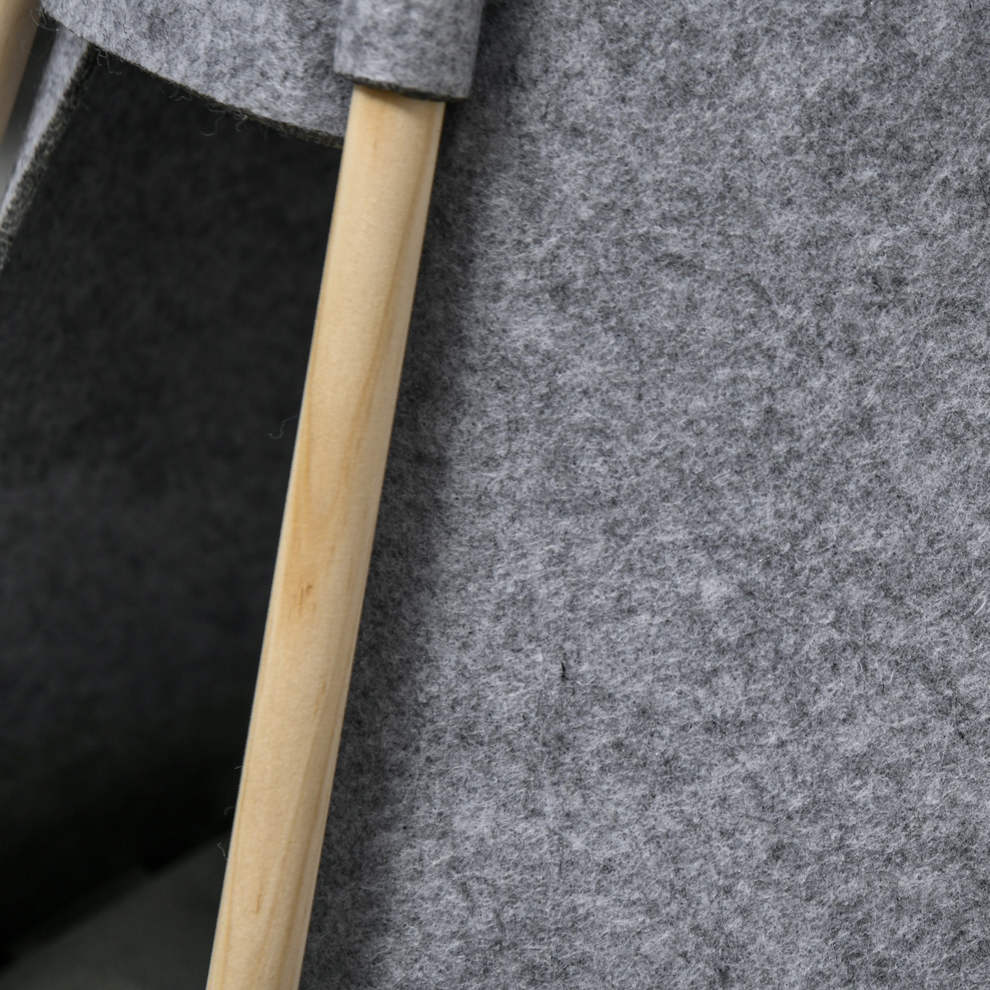 Pet Teepee Tent - Gray teepee for cats or small dogs - thick cushion for maximum comfort 2 pompoms included - pine wood structure felt plush gray