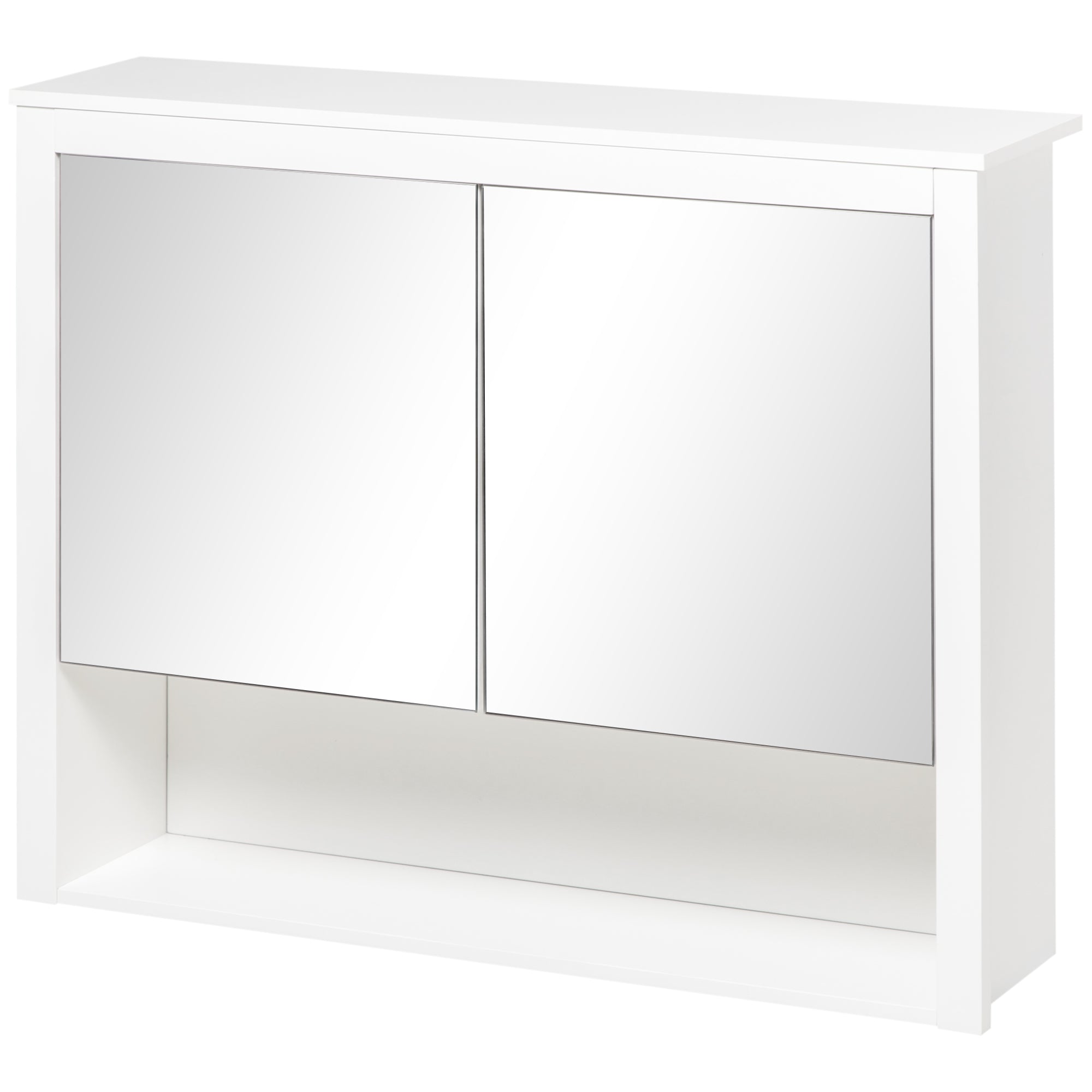 Bathroom Mirror Wall Cabinet with 2 Doors 3-Level Cabinet for Storage Wall Cabinet for Kitchen Bathroom Living Room Strong and Easy to Clean MDF Board White 56x13x58cm