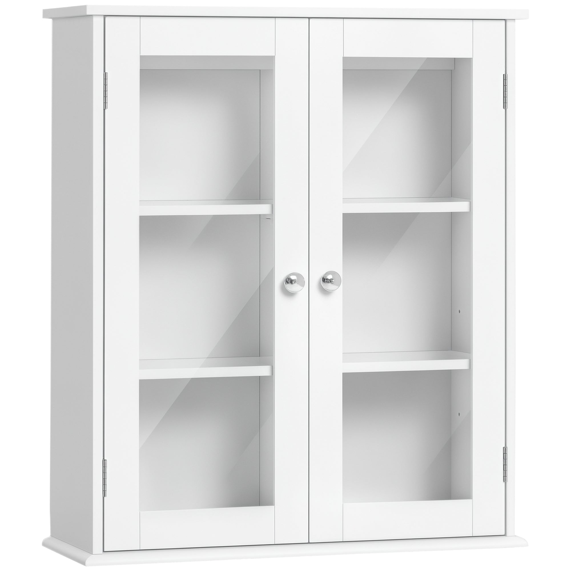 Wall Mounted Bathroom Cabinet, Bathroom Storage with 3 Shelves and Adjustable Shelves, 30x32x73 cm, Glossy White