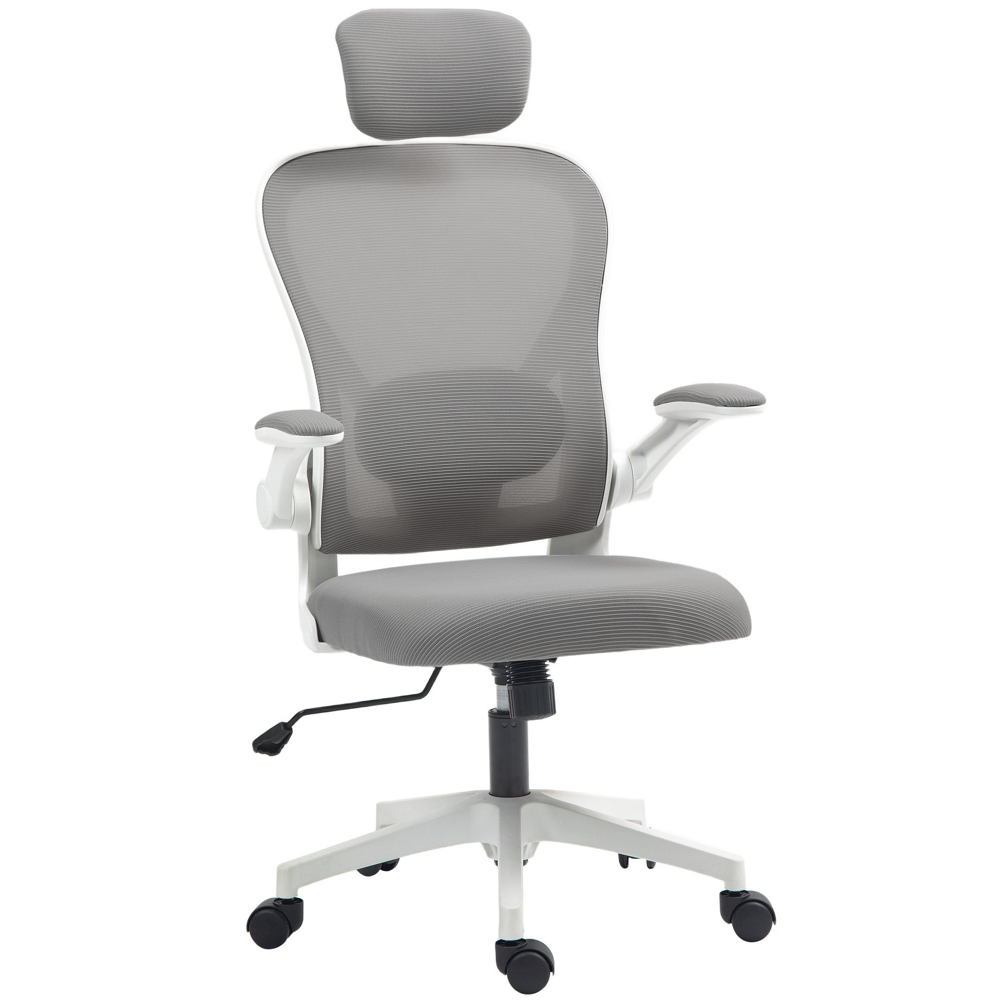 Office Chair Desk Chair Adjustable Swivel Chair with Foldable Armrests 5 Wheels and Rocking Function Load 120 kg 65x69x112-122 cm Gray