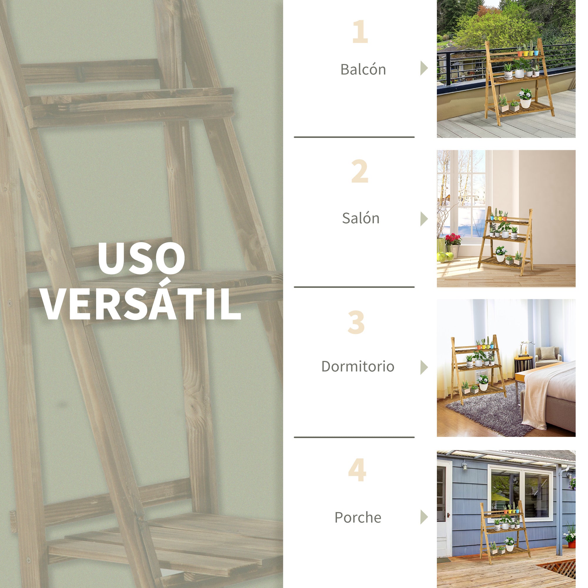 Do you like flowers and plants but don't have the right space? This Outsunny multi-level plant stand, made of fir wood with a charred finish, is a perfect choice to decorate your garden and home. Thanks to its ladder-shaped design, it offers different levels to place many plants in pots of various sizes. Ideal for indoor to add a touch of greenery to your home or outdoor so your plants can breathe freely.