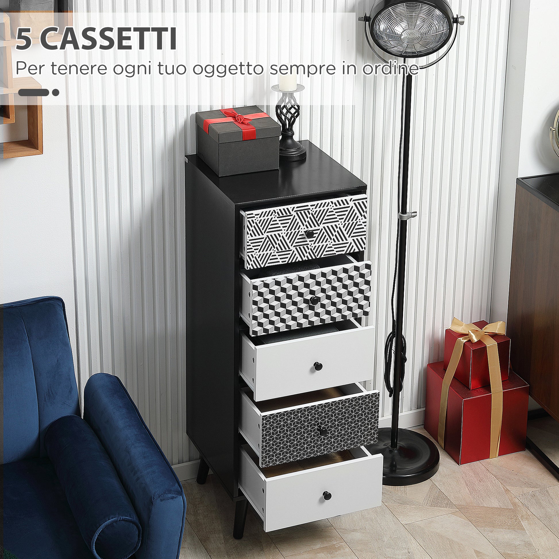 - - GEOMETRIC DESIGN: The main feature of this dresser is the geometric pattern on the different drawers, which brings an original and contemporary touch to your decor. Ideal for placing in the bedroom, living room, walk-in closet, entrance, and many other spaces.