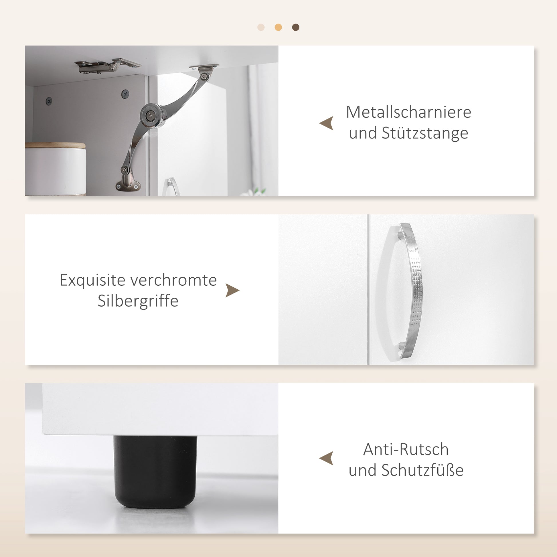 - - Sturdy and easy-care materials: Made of high-quality MDF panels and sturdy particle board with a coated surface, this kitchen sideboard ensures durability and stability. The easy-care materials also make cleaning easier