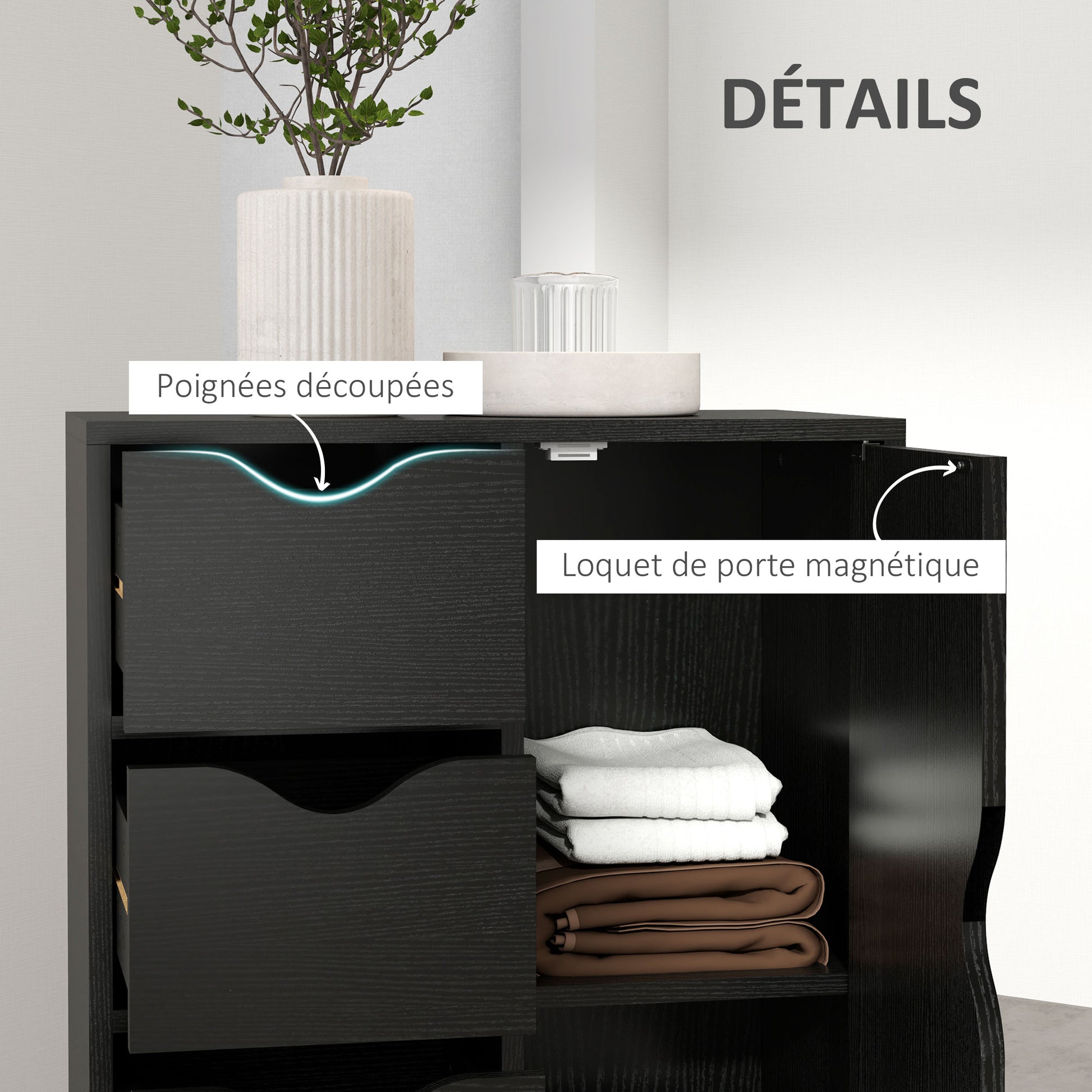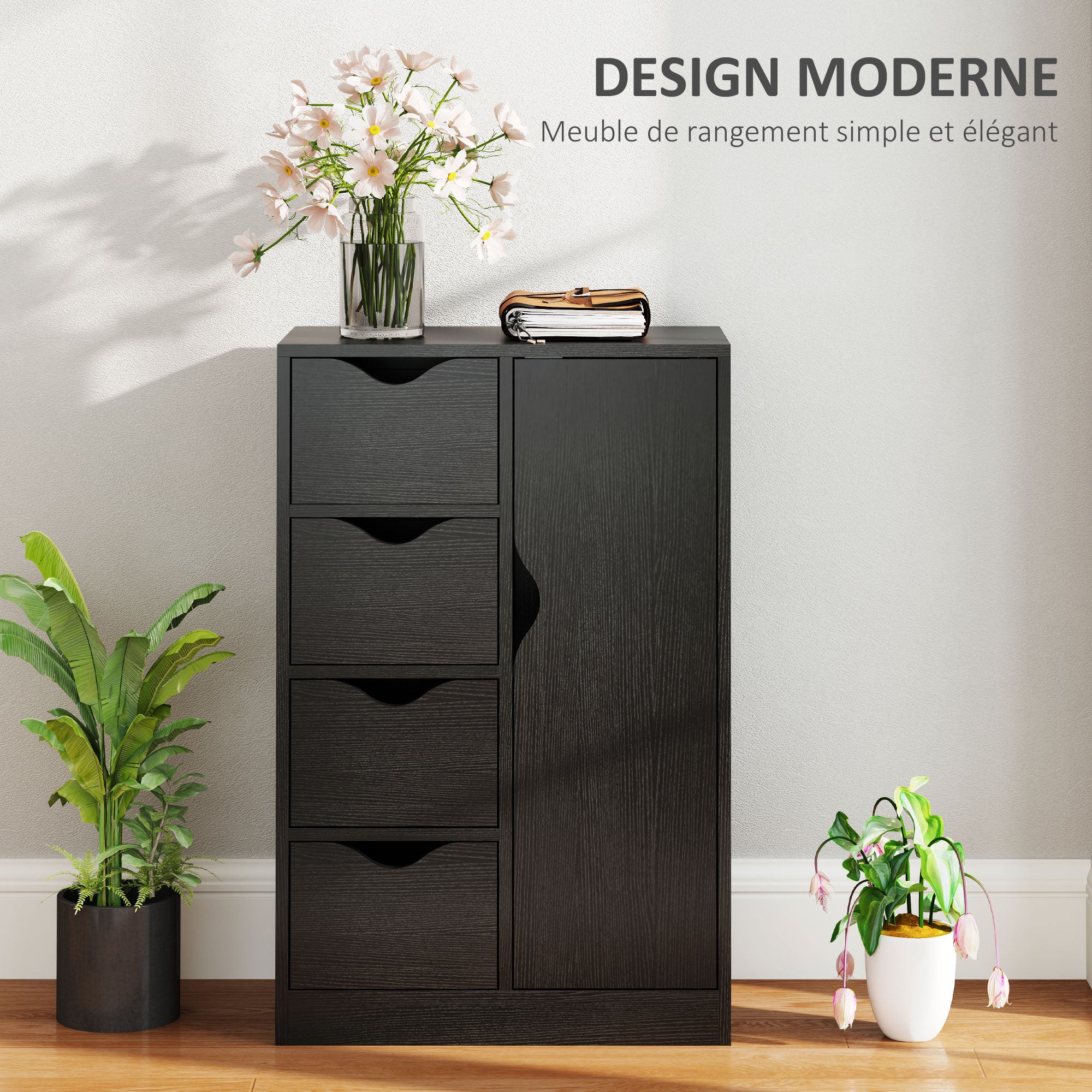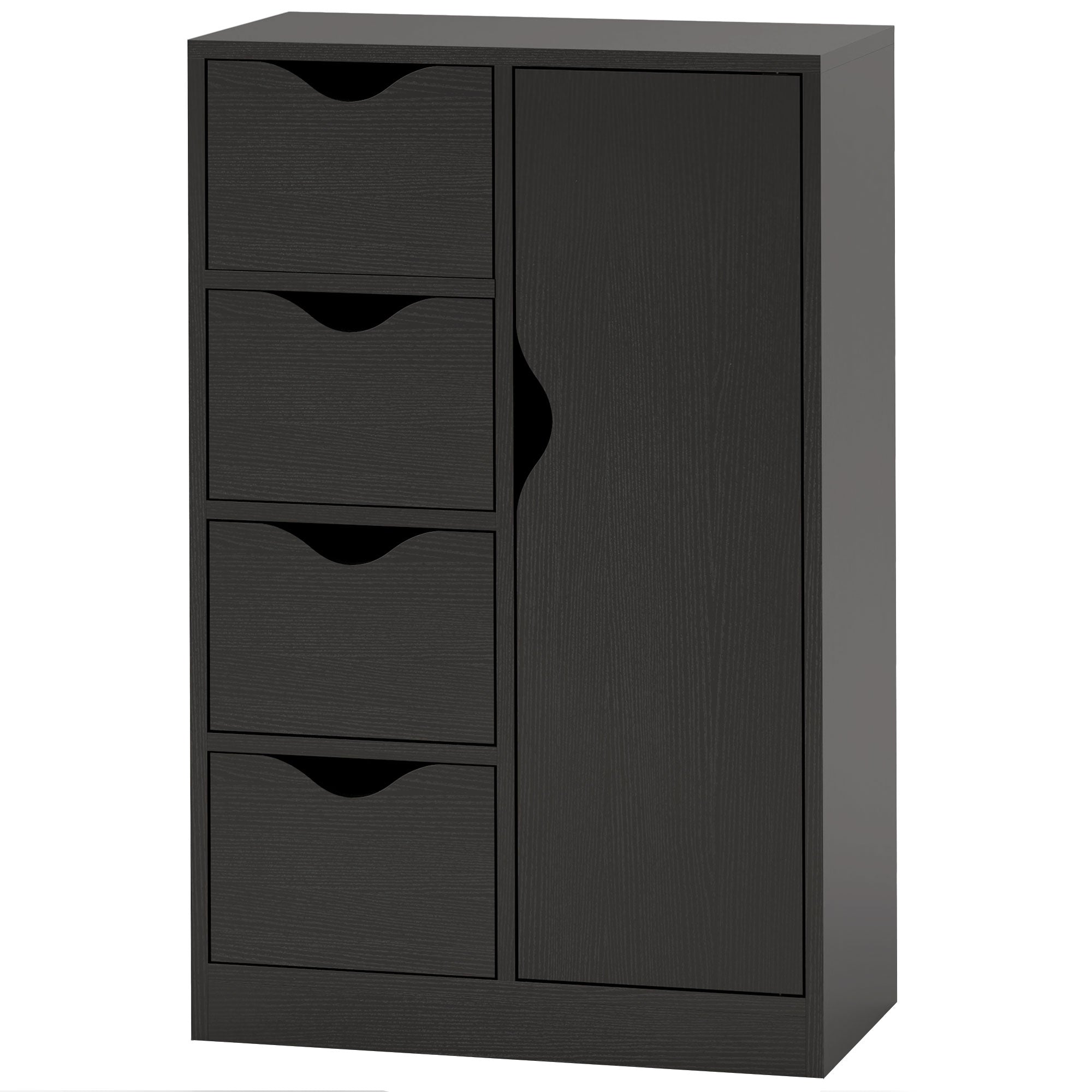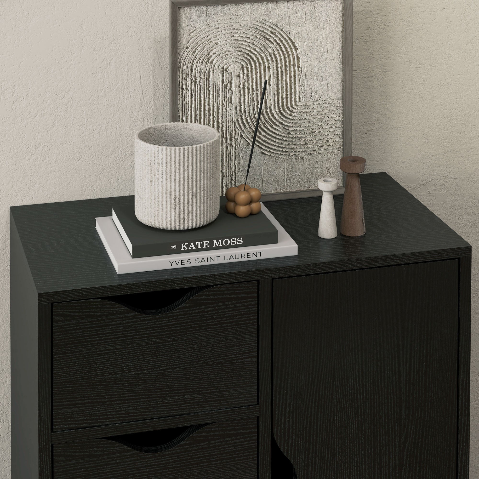 Modern Storage Cabinet Sideboard with 1 Cupboard and 4 Drawers - Wood - for Living Room, Kitchen, Entryway, Dining Room - Black