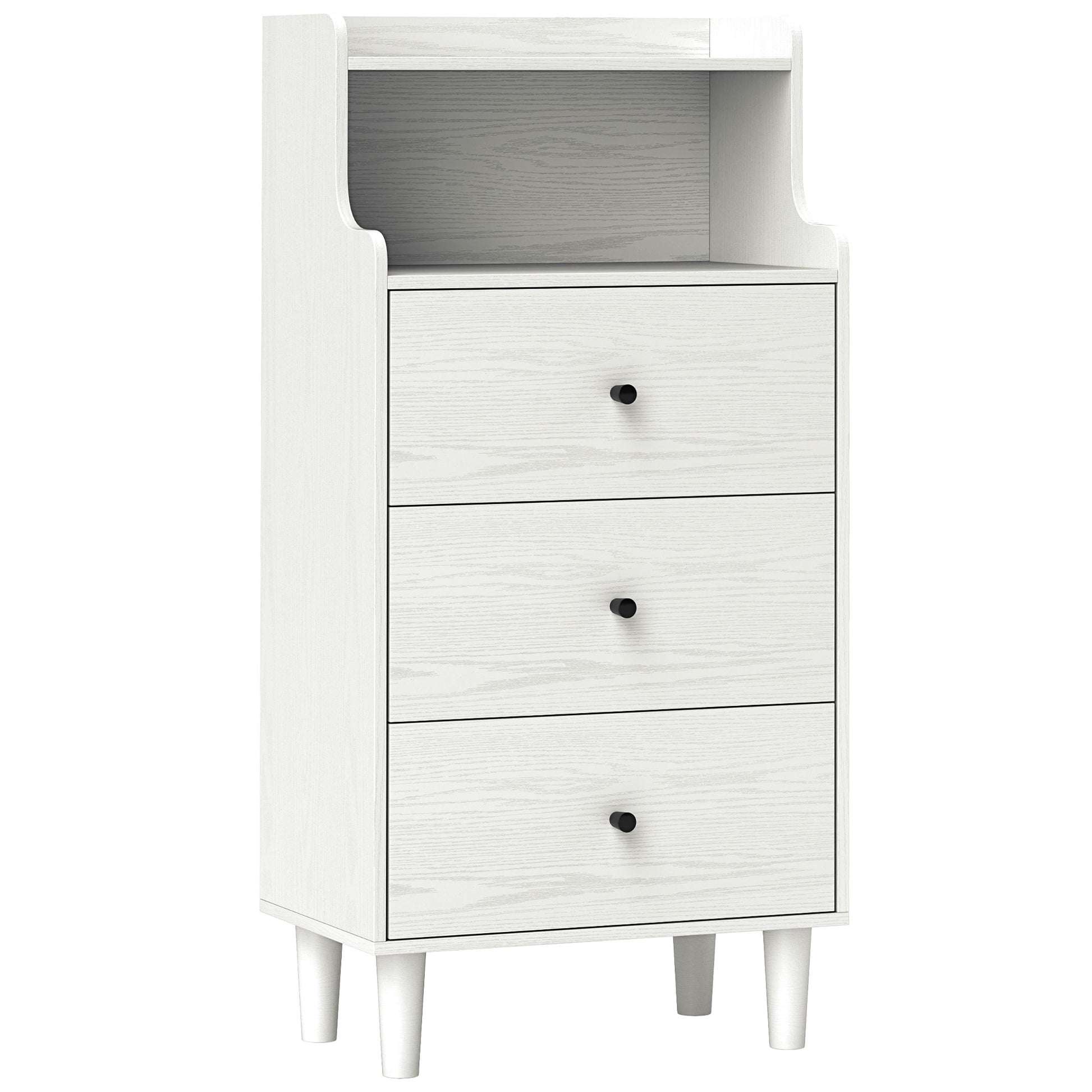 3-Drawer Dresser Narrow Bedroom Dresser with Open Shelves Anti-Tip High Chest of Drawers for Living Room Hallway 47x29x95 cm White Veined