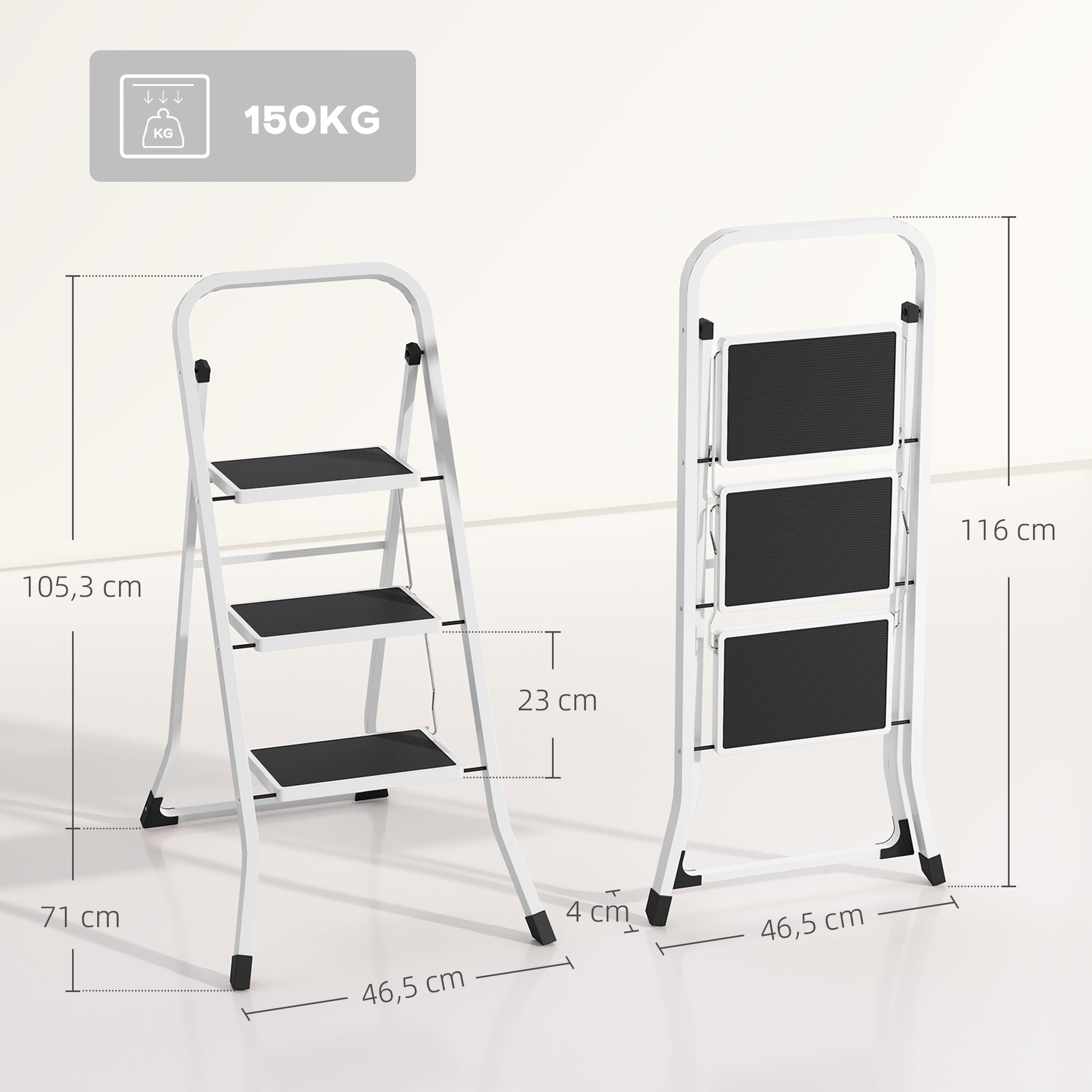 - - STURDY STRUCTURE: With a powder-coated metal frame, this 3-step ladder supports up to 150 kg. It meets the safety certification EN14183, ensuring strength and durability for your daily tasks