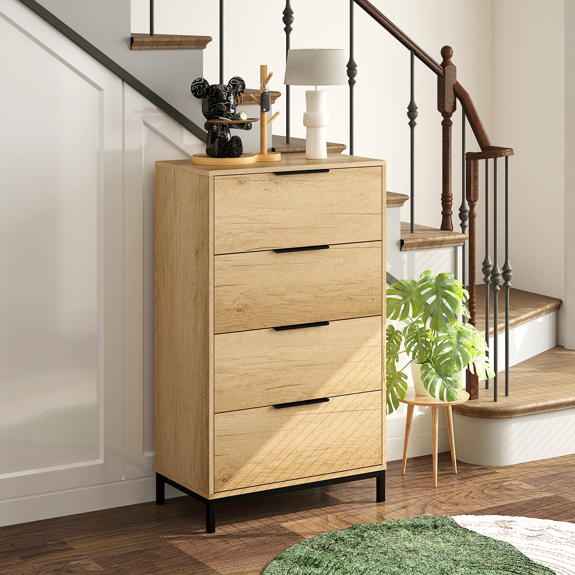 - - STURDY AND SAFE: Our 4-drawer chest of drawers is equipped with metal legs with reinforcement bars, an anti-tipping device, and non-slip feet to ensure optimal stability and safety for anyone in the house