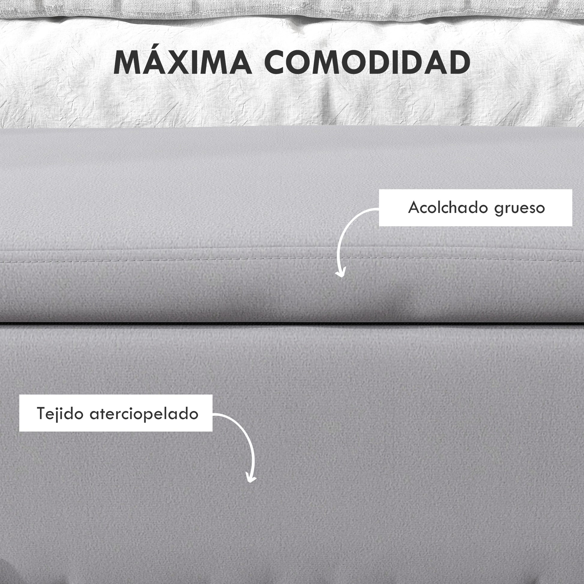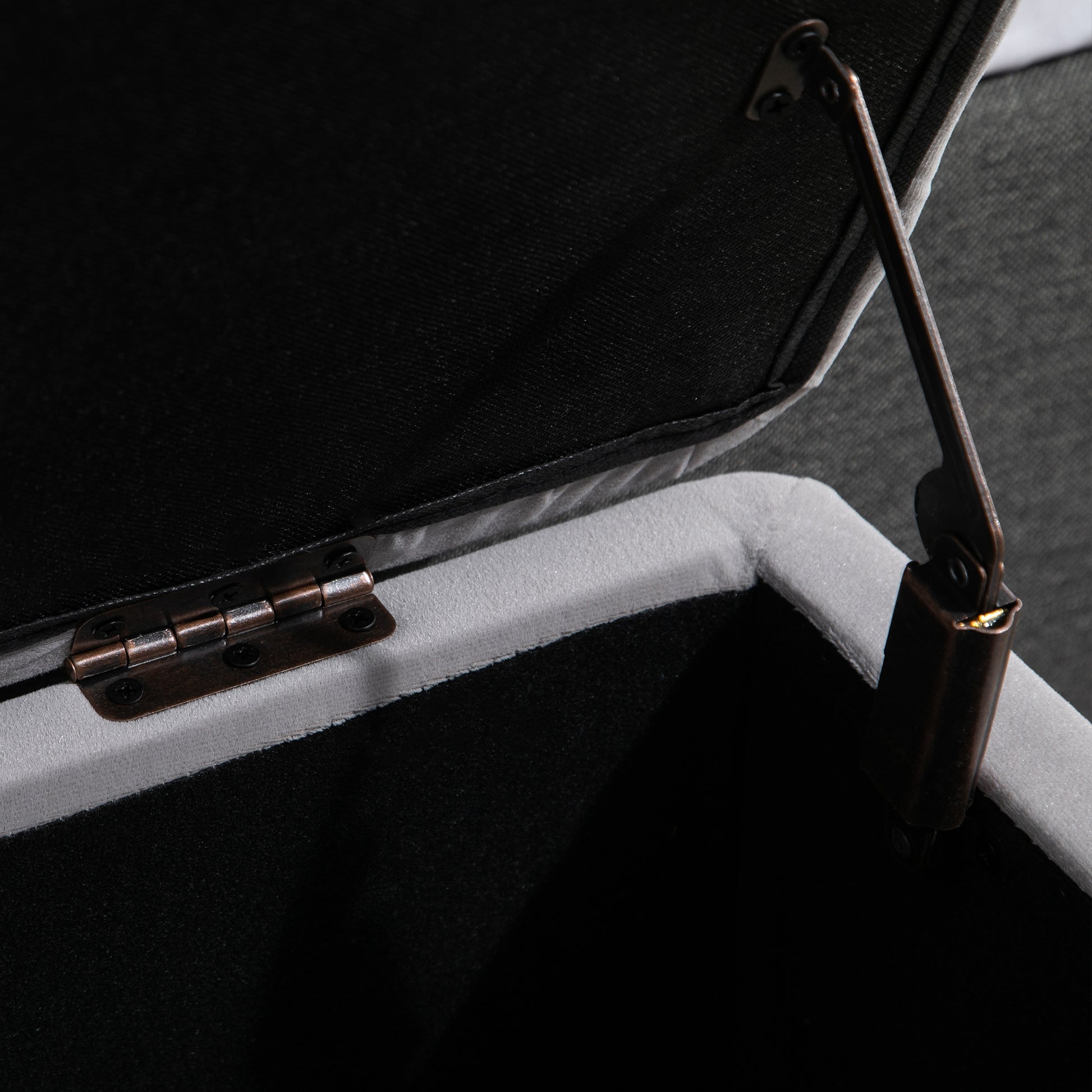 - - PADDED SEAT: The surface of the storage bench is padded with 4 cm thick high-density foam (26D). The upholstery is made of soft, breathable, and elegant grey polyester fabric