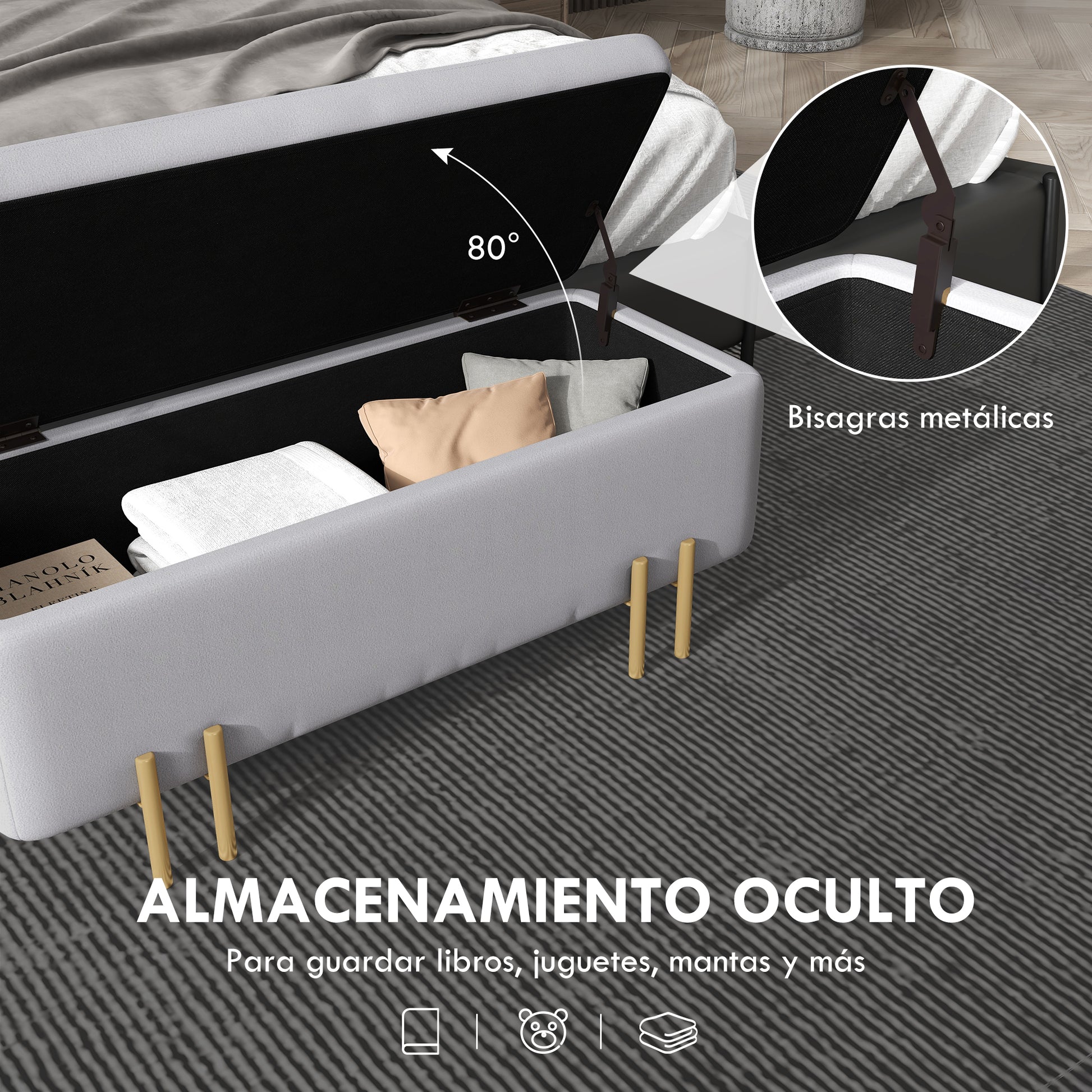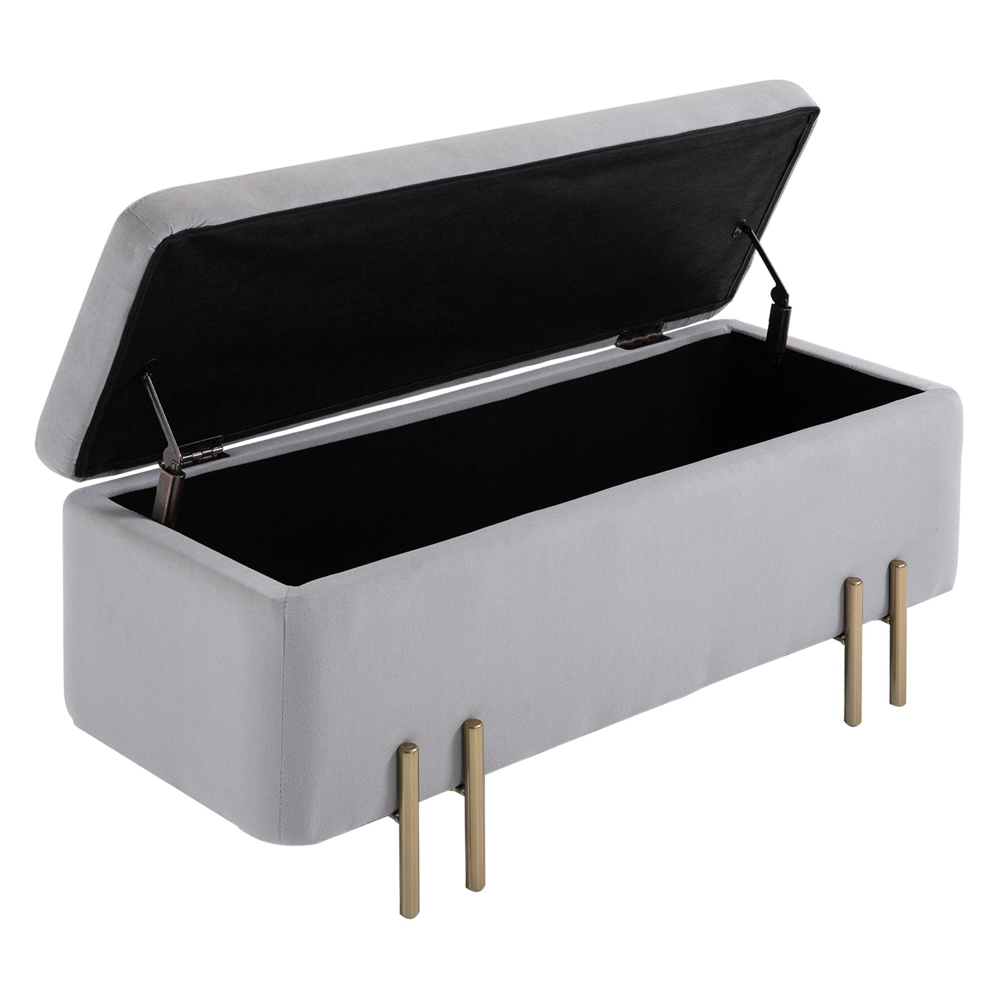 70L Storage Ottoman Upholstered Velvet Storage Bench with Metal Legs for Entryway Living Room 100x40x42 cm Light Grey