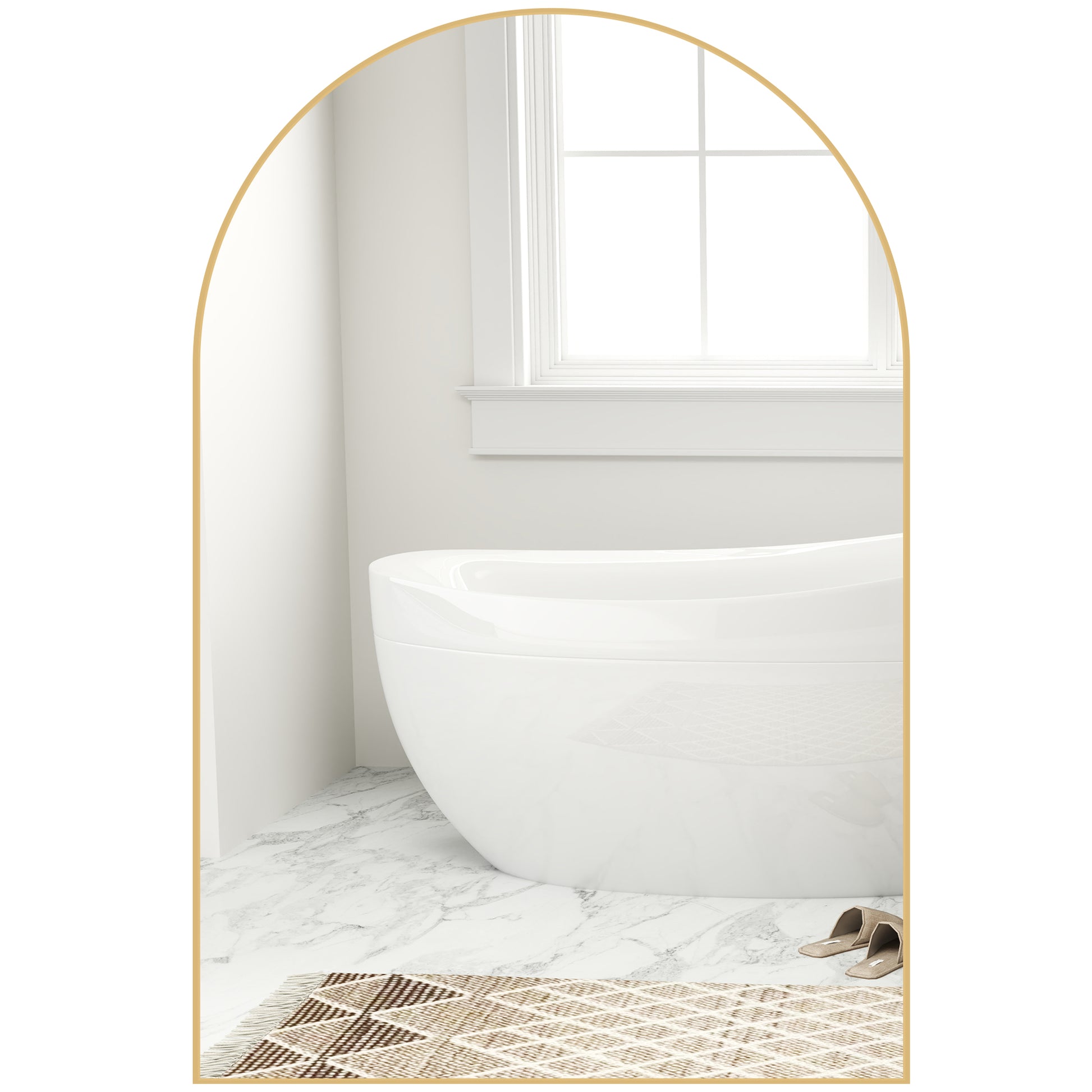 Arched Wall Mirror, Bathroom Mirror, 60 x 90 cm, High Definition, with Aluminum Alloy Frame, for Bedroom, Living Room, Entryway, Gold