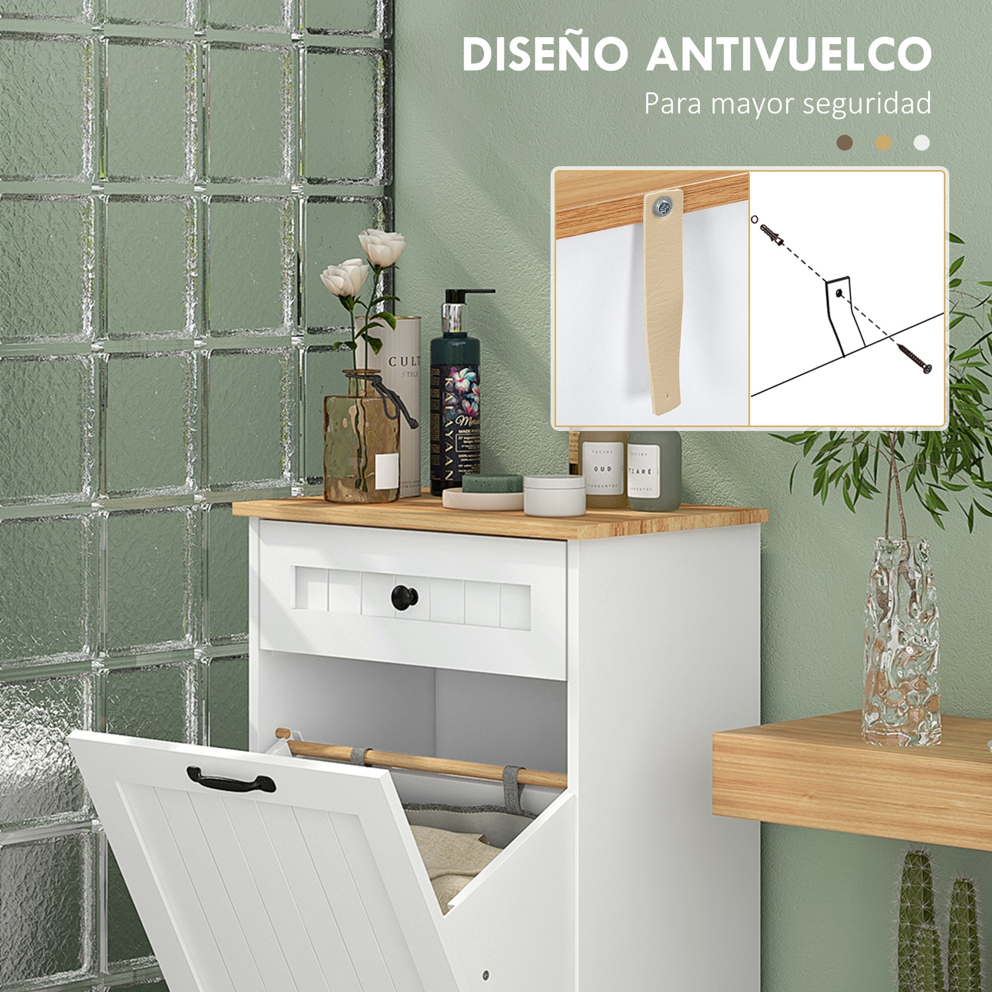 Bathroom Storage Cabinet Laundry Basket Bathroom Cabinet with Drawer and Anti-tip Design Modern Bathroom Furniture 52x33x90 cm White