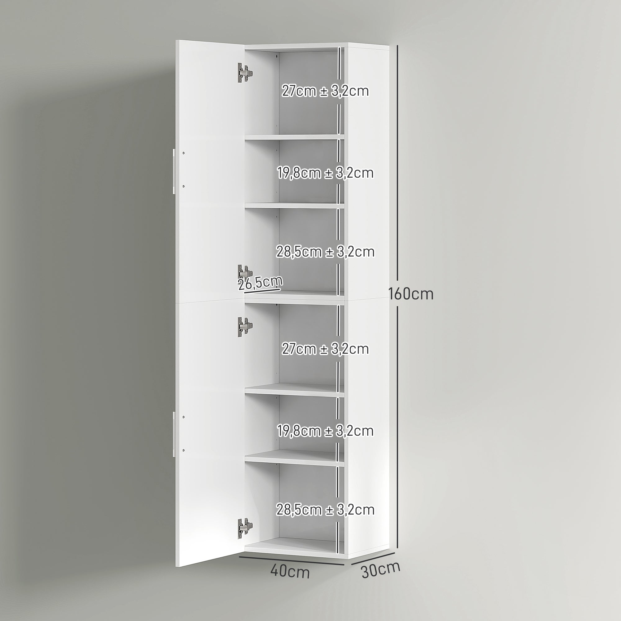 Bathroom Wall Cabinet Tall Bathroom Column with Adjustable Shelves and 2 Doors Modern Bathroom Furniture for Small Space 40x30x160 cm White Gloss