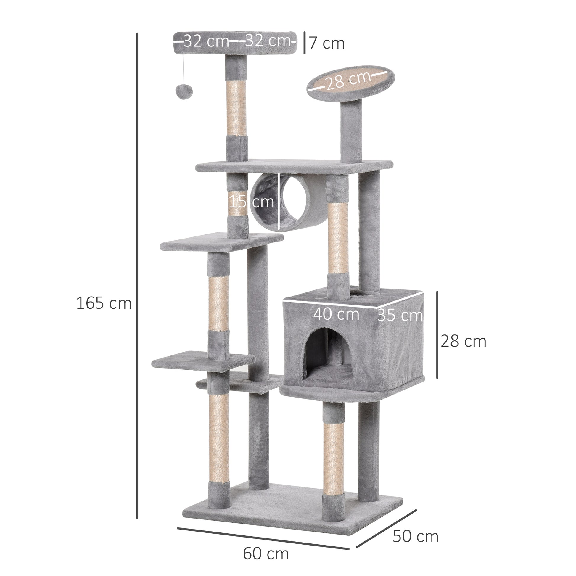 Column Scratching Post Tree 165cm with Scratching Board and Perches for Kittens and Adult Cats up to 4.5kg, Gray, 60x50x165cm