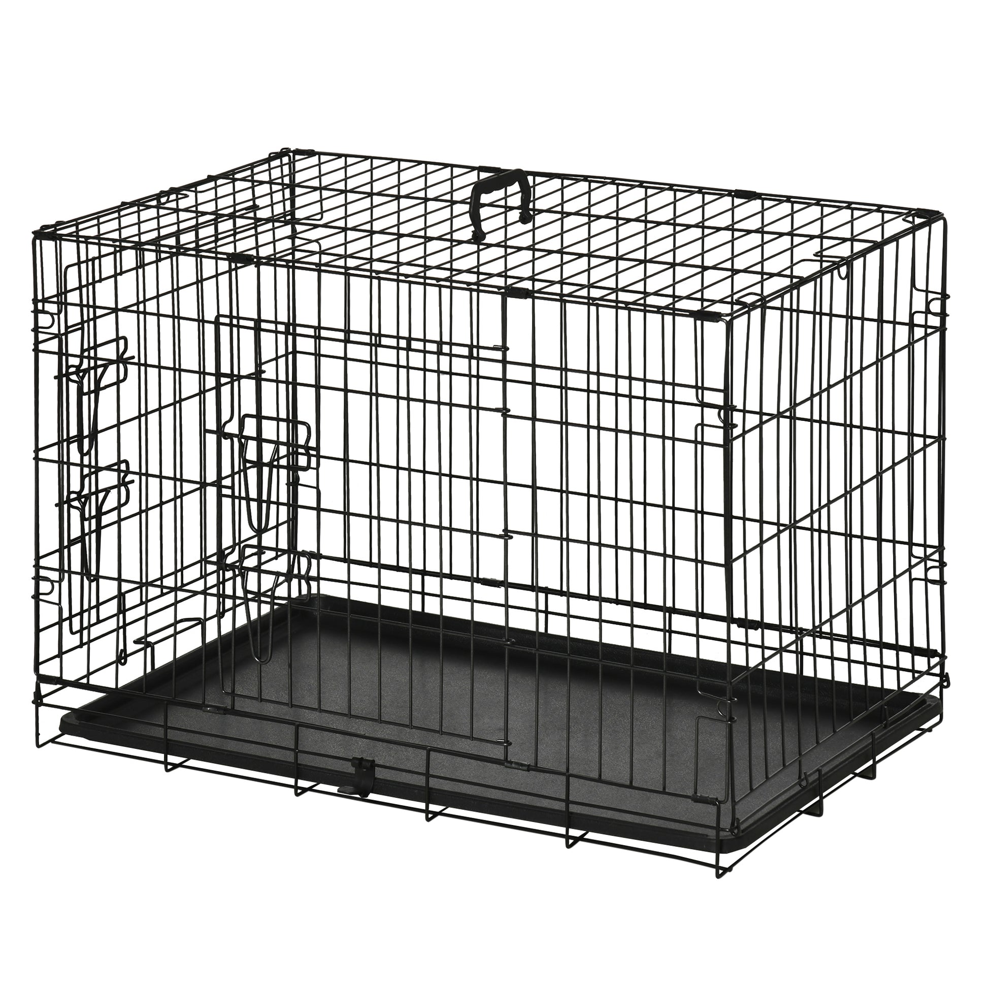 Dog Cage Transport Crate Wire Cage with Grid Dog Box Transport Box Small Animal Cage Travel Box Collapsible Metal Black 75 x 48.5 x 53 cm