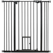 Dog Safety Barrier with 1 Small Door 74-101x104.1 cm Extendable Pet Barrier with Automatic Locking System and Double Lock for Door Hallway Stairs Black