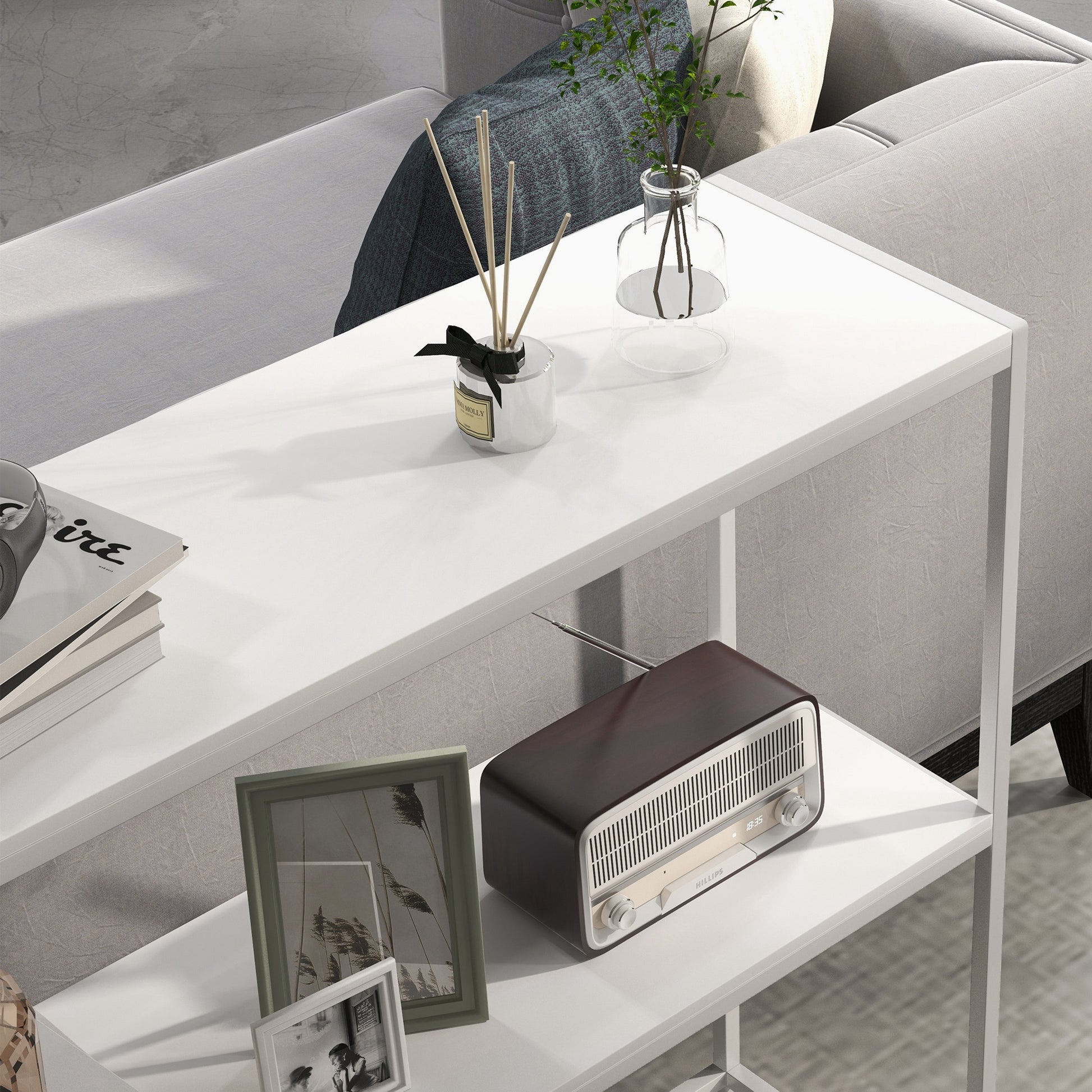 Entryway Console Table with Open Shelf and Anti-Tip Steel Frame for Living Room Hallway 100x30x87 cm White