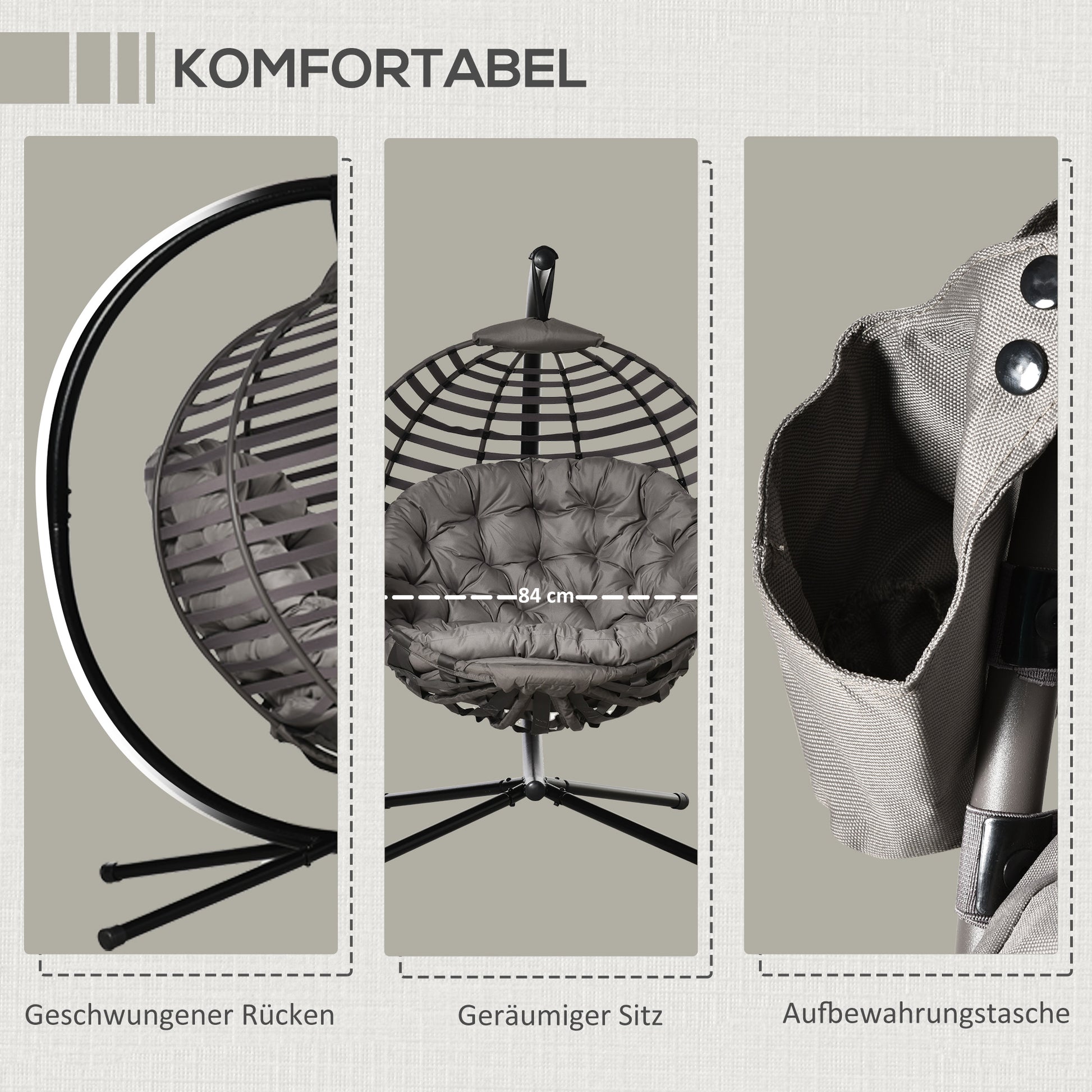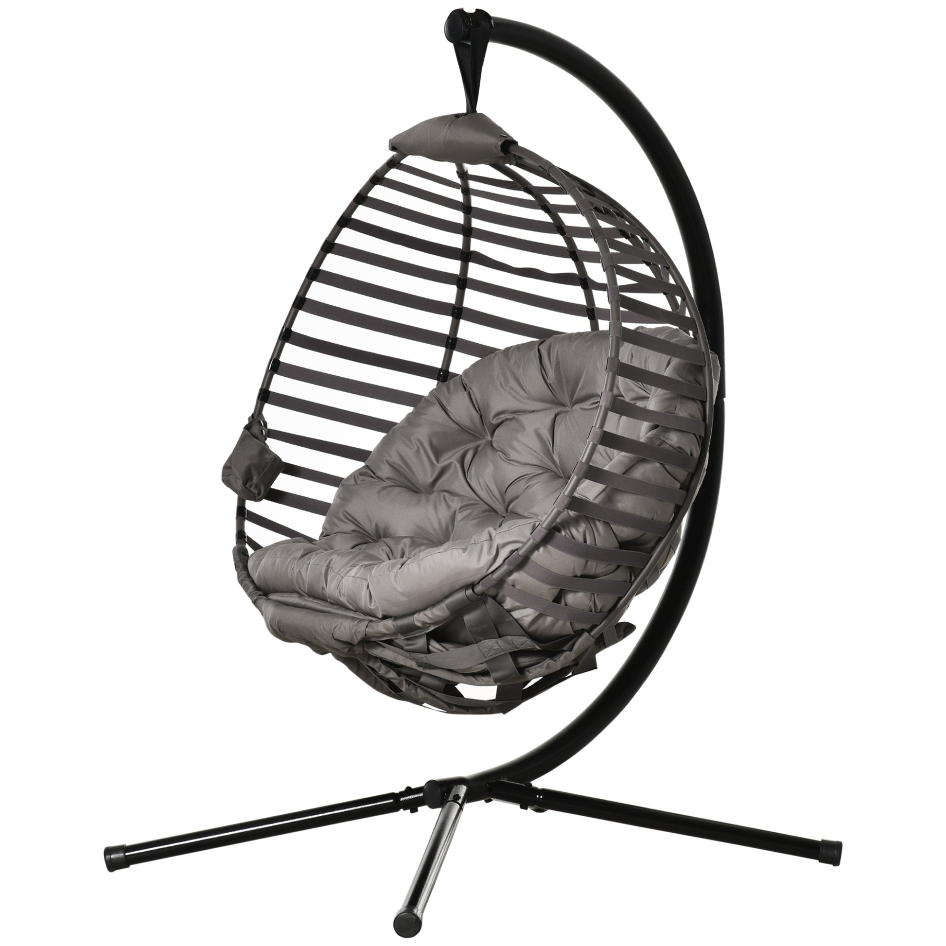 Hanging Chair with Stand, Egg-shaped Hanging Swing with Soft Seat Cushions, Foldable Hammock for Outdoor Swing Chair Indoor Outdoor, Patio, Garden, Gray