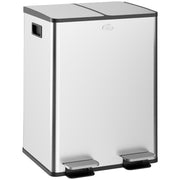 Kitchen Trash Can with 2 Compartments 2x20L Stainless Steel Kitchen Garbage Can with Pedal Soft Close Lids and Removable Bin for Recycling Waste Food Scraps Silver