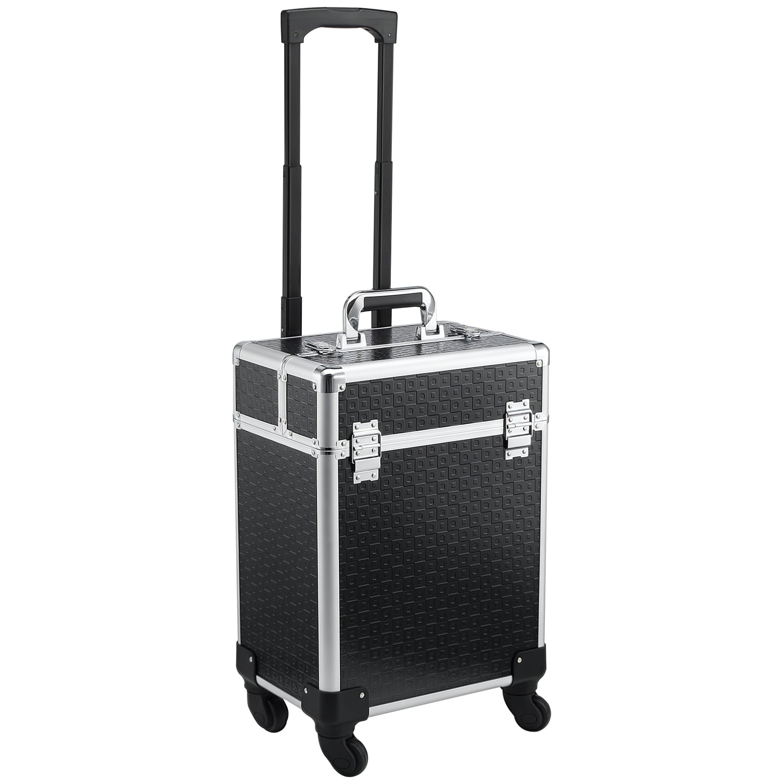 Makeup Trolley Case Cosmetic Vanity Box Telescopic Handle Adjustable 34L x 24W x 52H cm Aluminum Black