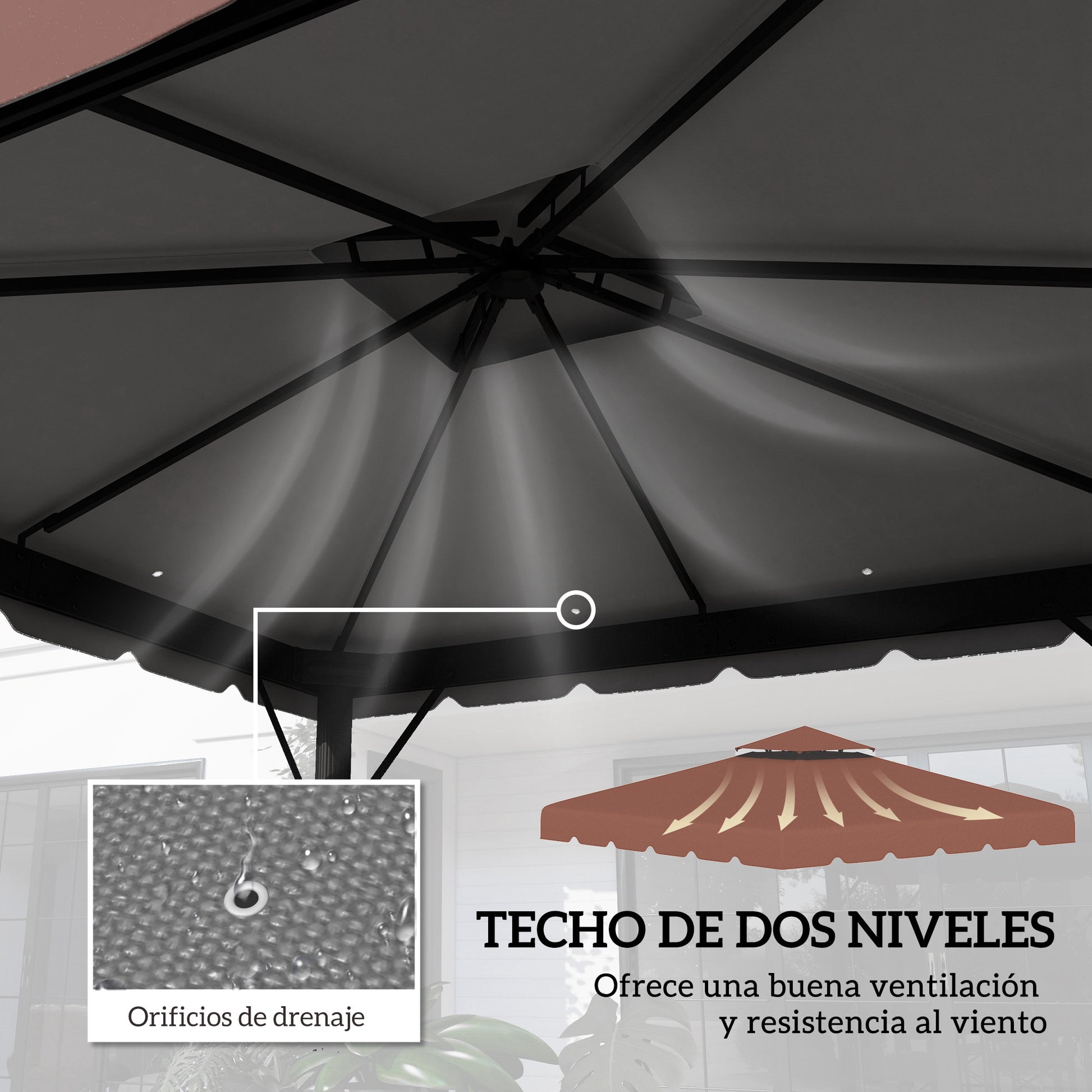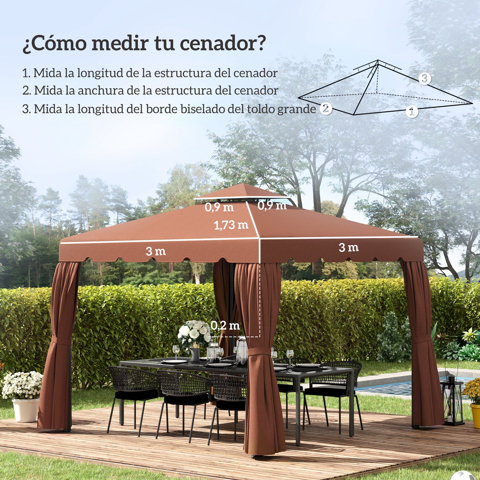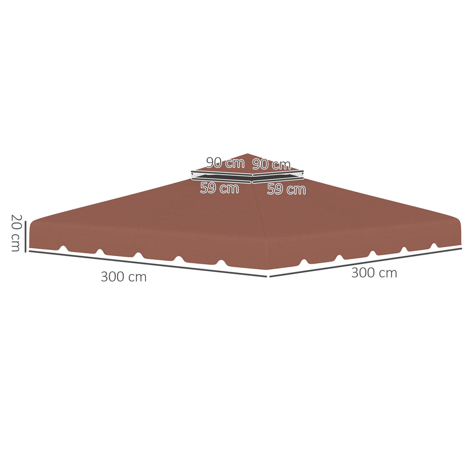 Replacement Canopy for 3x3m Gazebo Double Roof Replacement Cover with 8 Drainage Holes Replacement Canopy for Gazebo Pavilion Brown