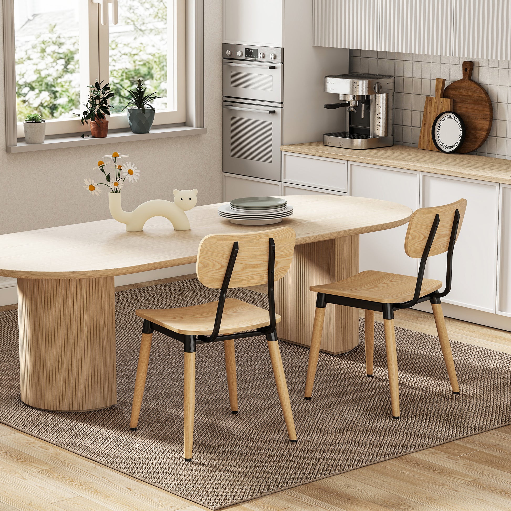Set of 2 Dining Chairs Modern Kitchen Chairs with Steel Legs and Curved Backrest for Dining Room, Bedroom, Living Room, Natural Wood Effect