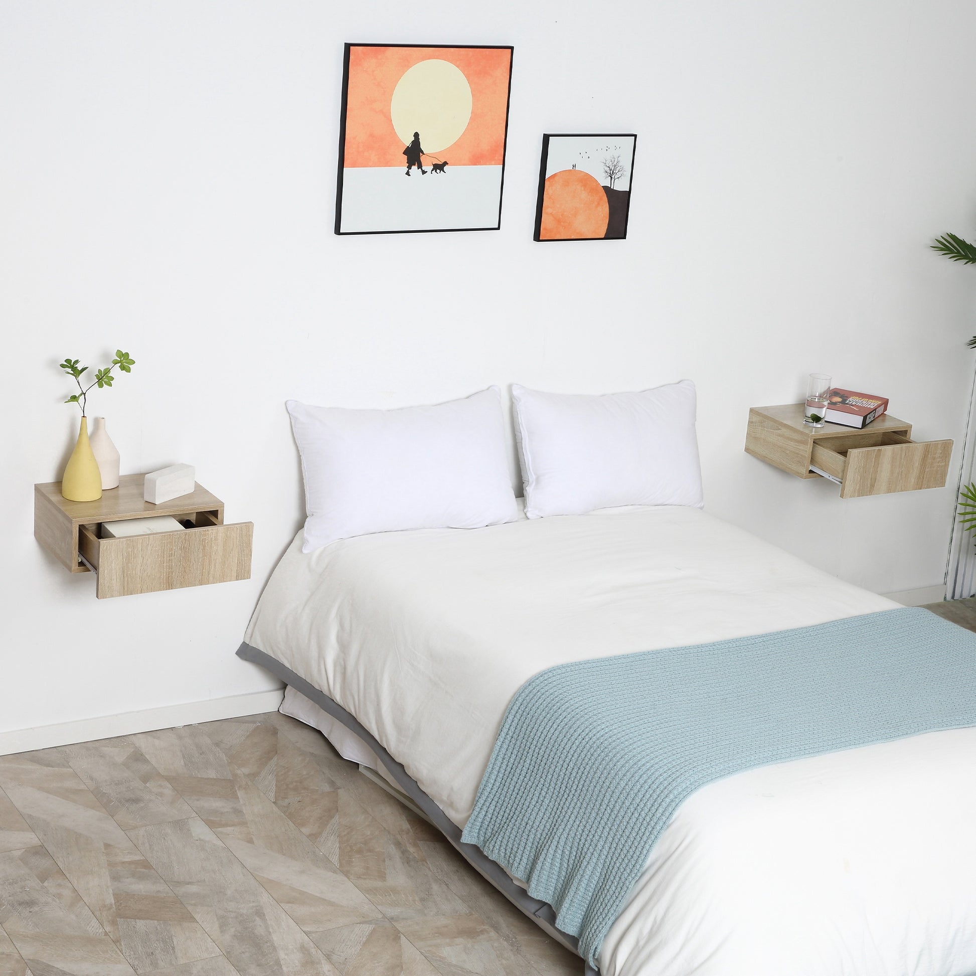 • - SET OF 2 NIGHTSTANDS: This product consists of 2 wall-mounted bedside tables with identical features. In a modern and elegant style and natural wood color. To fit perfectly in your bedroom or guest room