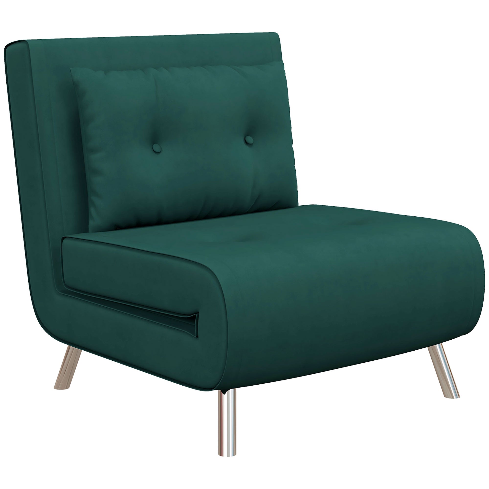 Sleeper Chair, Single Sofa with Bed Function, Folding Chair, Guest Bed with Pillow, Upholstered Sofa in Velvet Look for Bedroom, Living Room, 77 x 88 x 83 cm, Dark Green