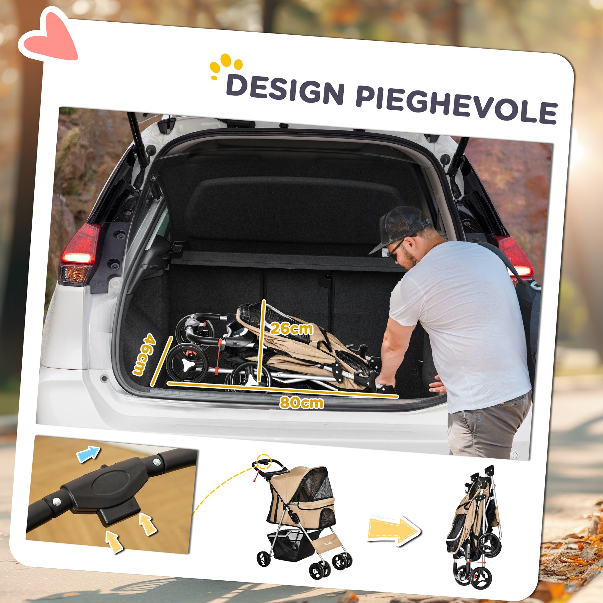 - - EASY TO STORE: This cat and dog stroller is easy to fold with a touch: simply press the button on the handle and push it forward to activate it. Weighing only 5.5 kg, it's ideal for transportation in the car trunk
