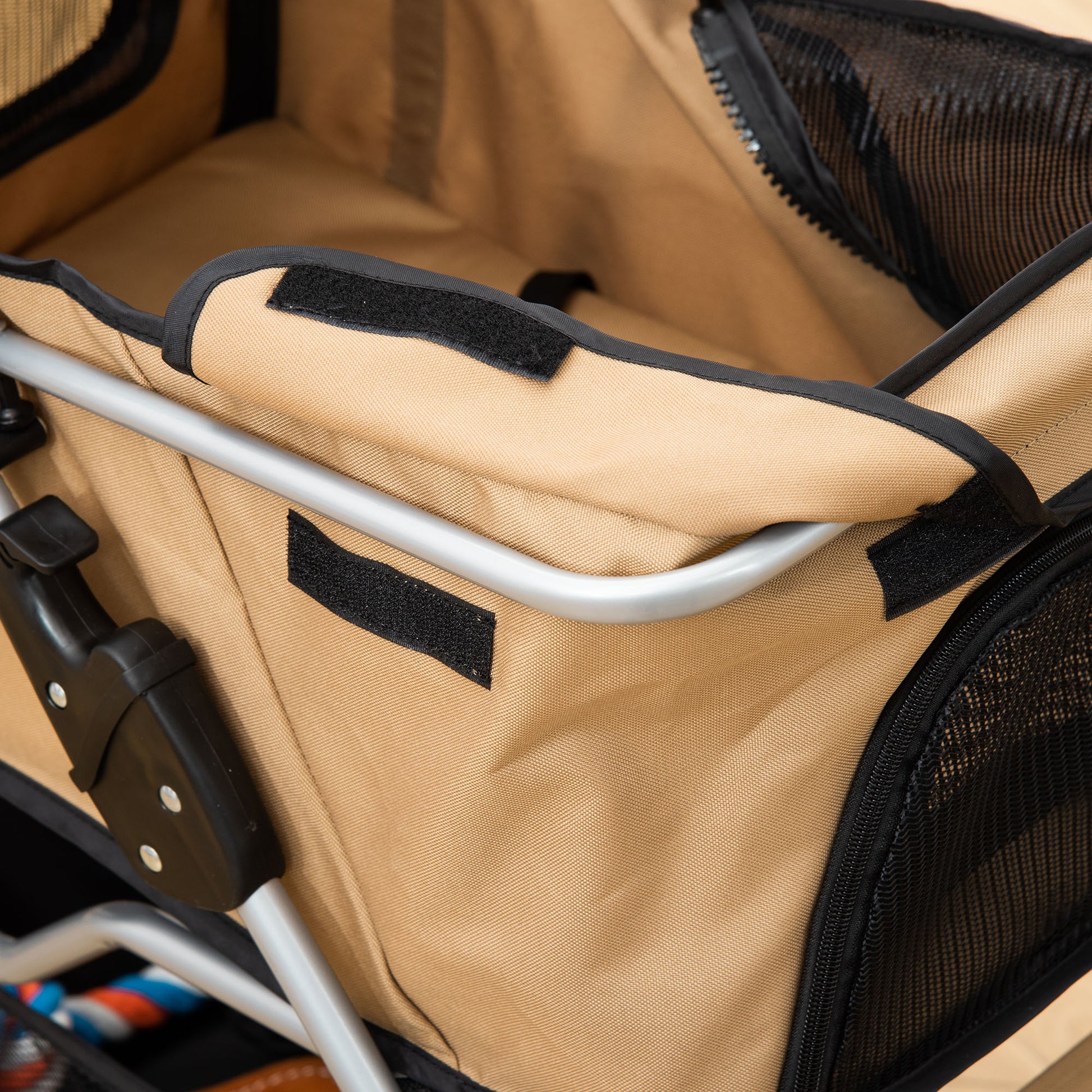 - - CONVENIENCE: Thanks to the integrated storage basket and cup holder on the dog stroller handle, you can easily carry your pet's accessories and personal items