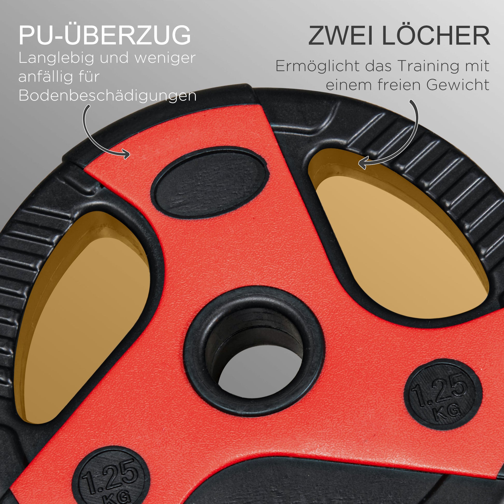 - - 20 kg weight: With 2 x 5 kg, 2 x 2.5 kg, 2 x 1.25 kg weight plates, and 1 x 2.5 kg barbell. Combine the weight plates as needed to adjust the weight according to your training needs.