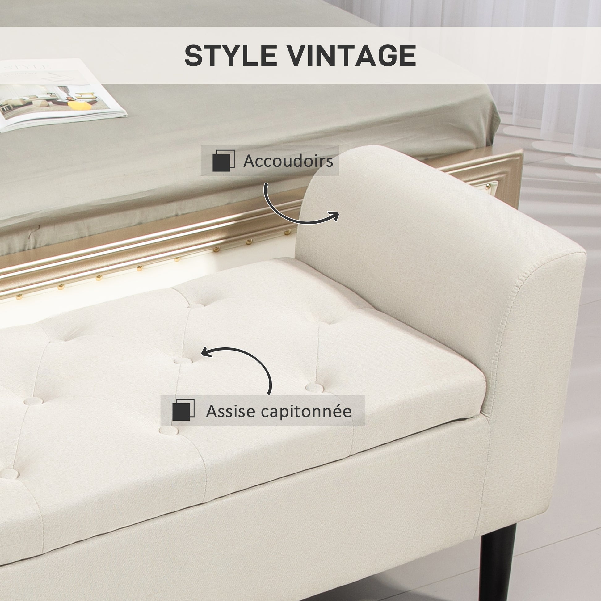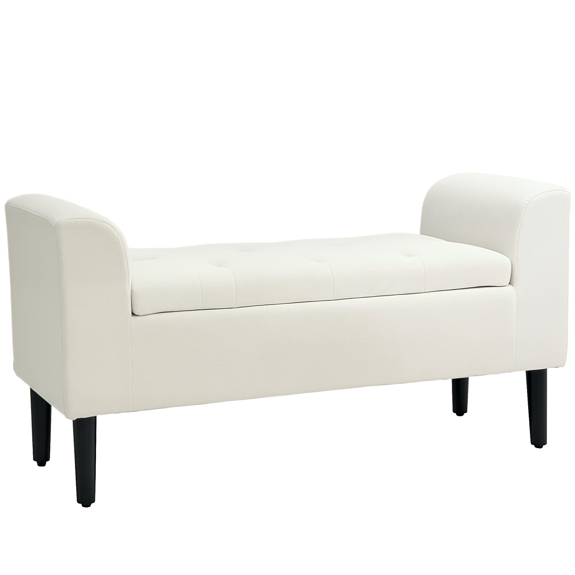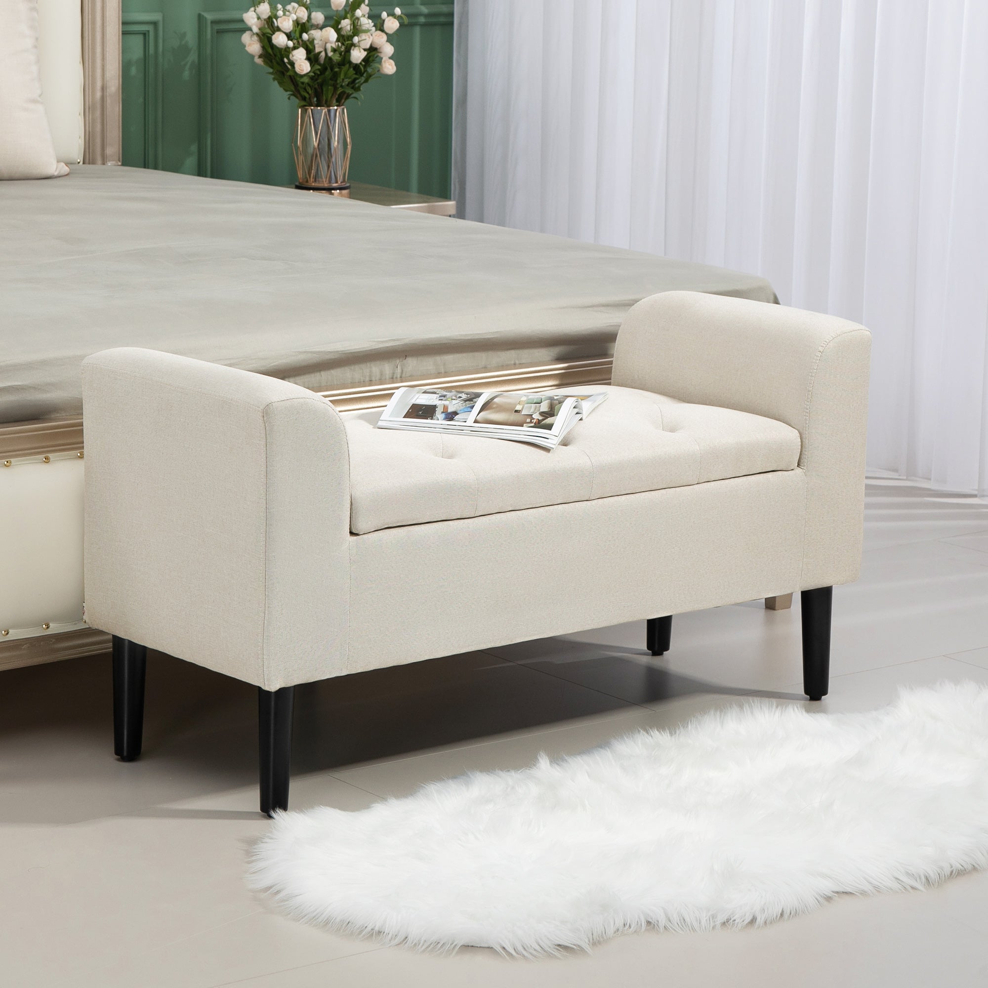 Upholstered Storage Bench with Armrests, Storage Bench for Bedroom, Entryway, Living Room, Load 130 Kg 116 x 44 x 58 cm Beige
