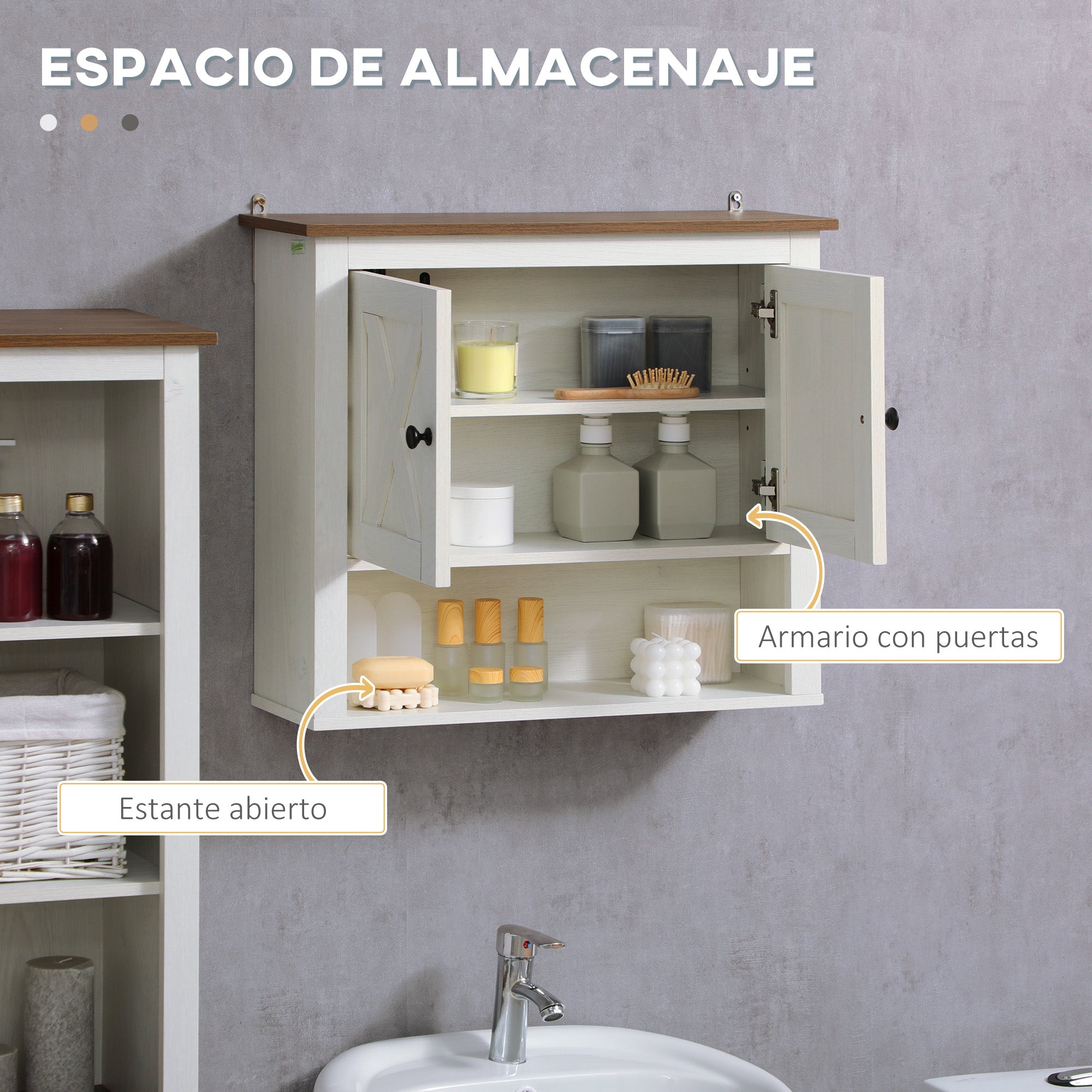 • - CLASSIC STYLE: This bathroom cabinet with the combination of wood and white, and the X-shaped door frame will add a touch of natural charm and style to your bathroom, easily complementing the rest of your decor