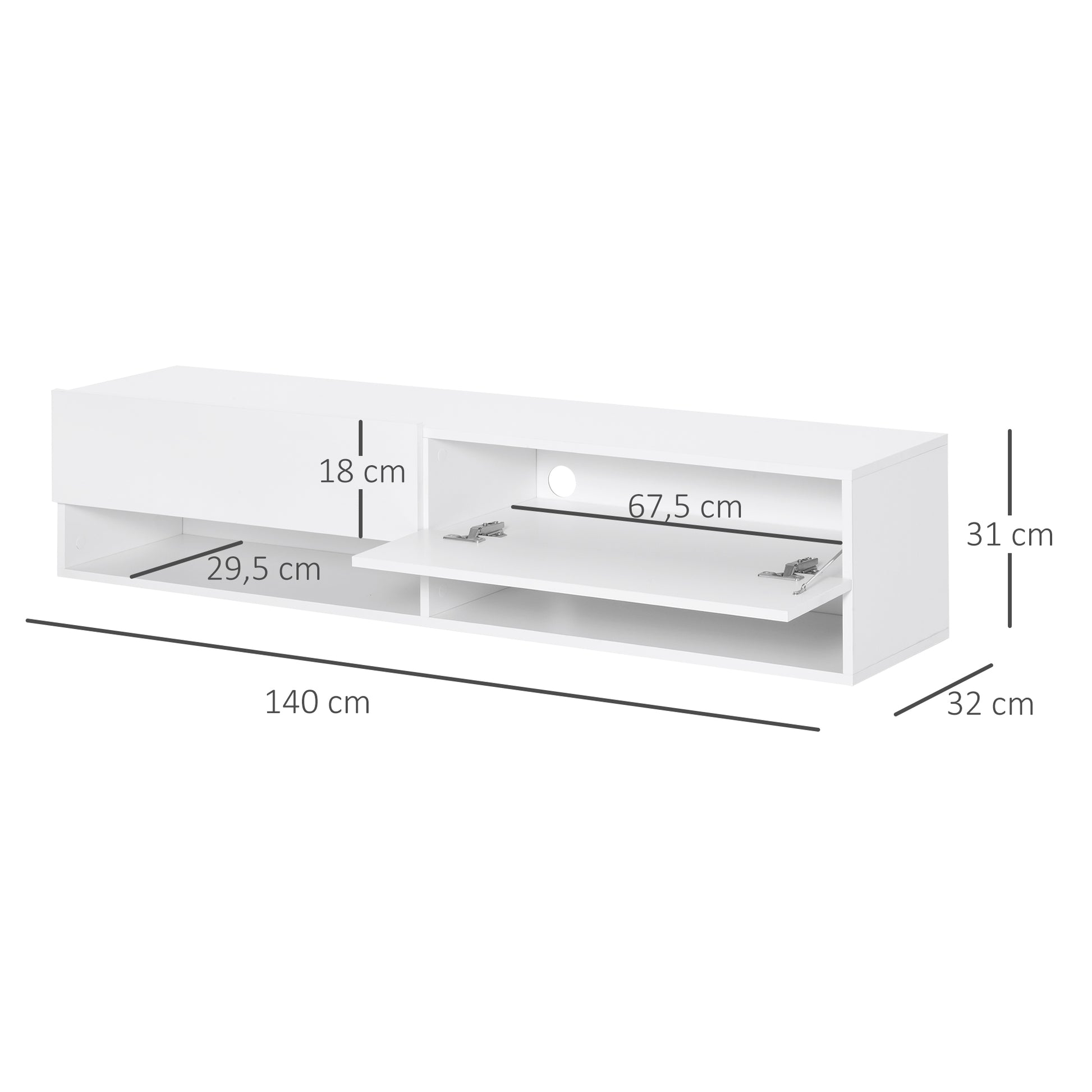 Wall Mounted TV Stand TV Cabinet for Living Room with 2 Compartments and 2 Cabinets with Flip Doors TV Stand for 60-inch Television 140x32x31 cm White