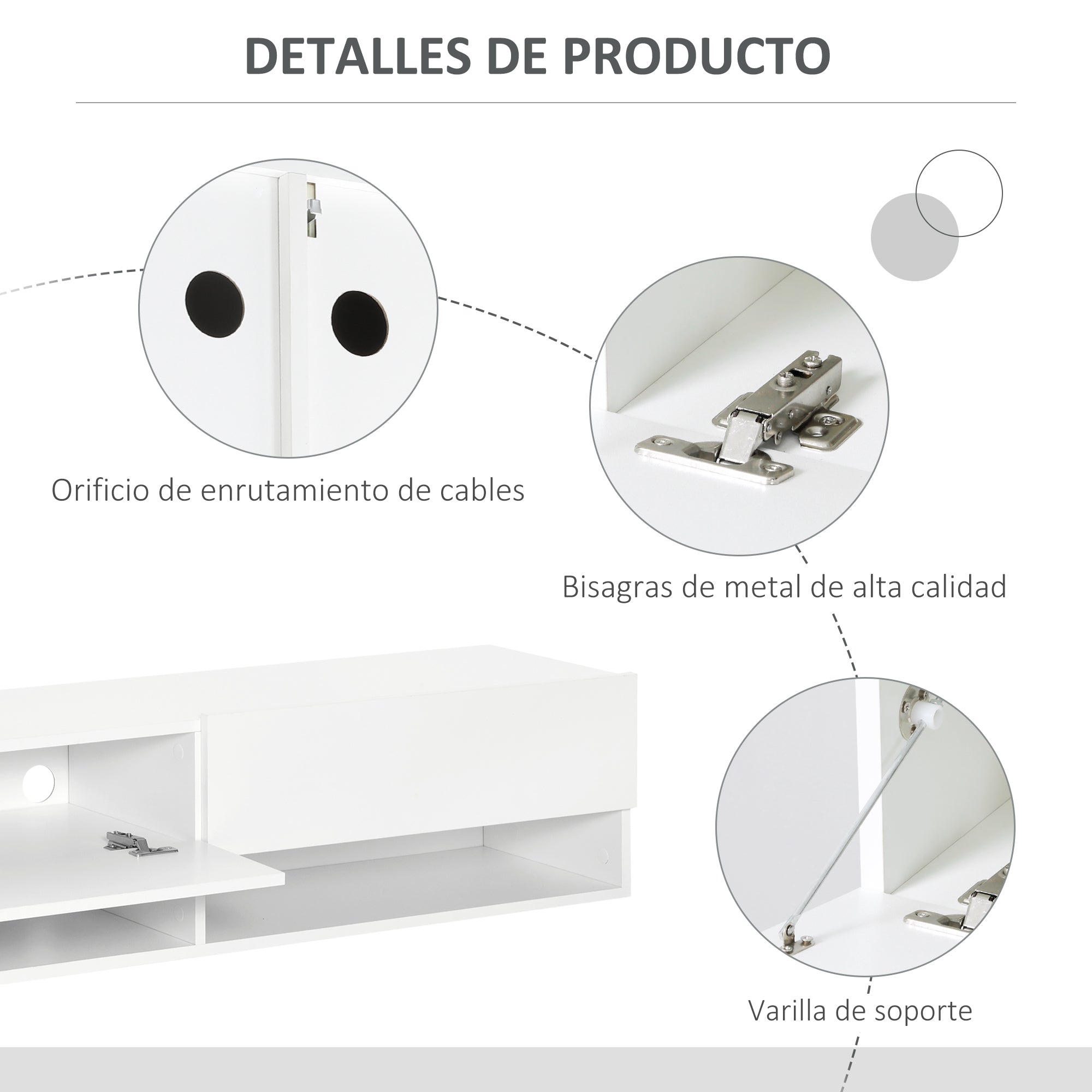 - - SPACE-SAVING: The floating design of this TV stand keeps the floor free of objects, creating a sense of spaciousness, while keeping all your consoles and accessories within easy reach
