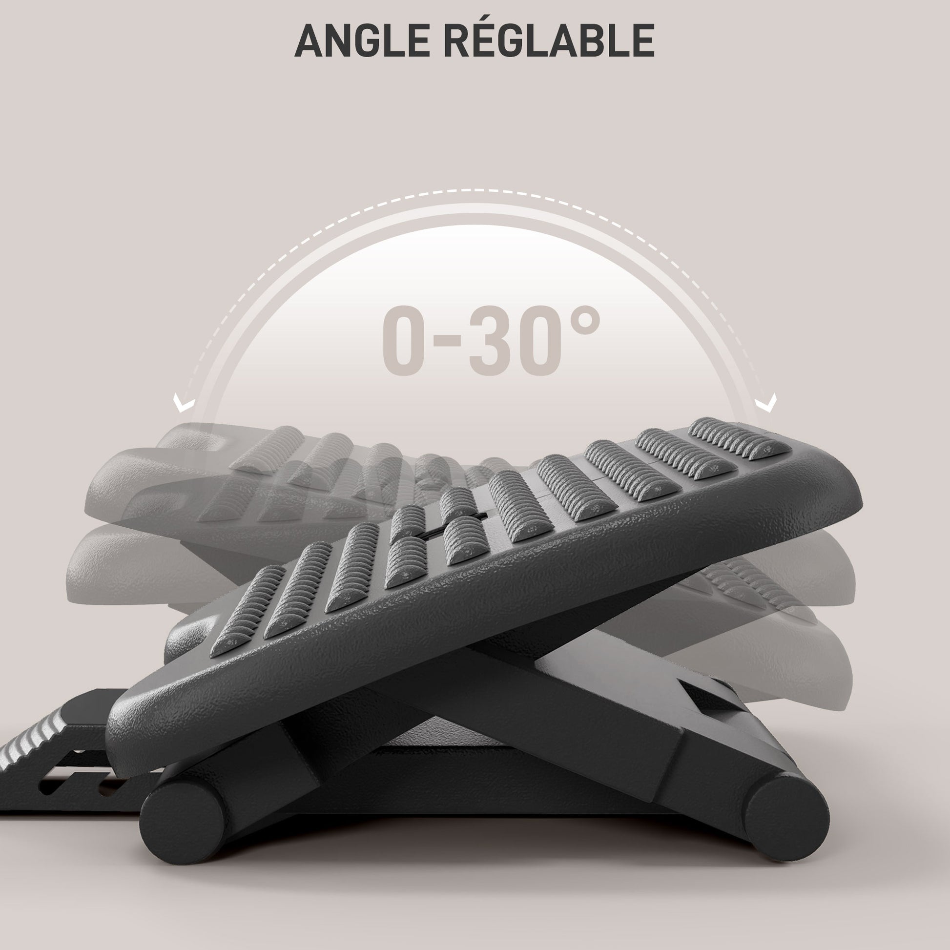 Desk Footrest, Ergonomic Footrest, Adjustable 30° Angle, 3-Position Height Adjustment, for Office and Home, Black