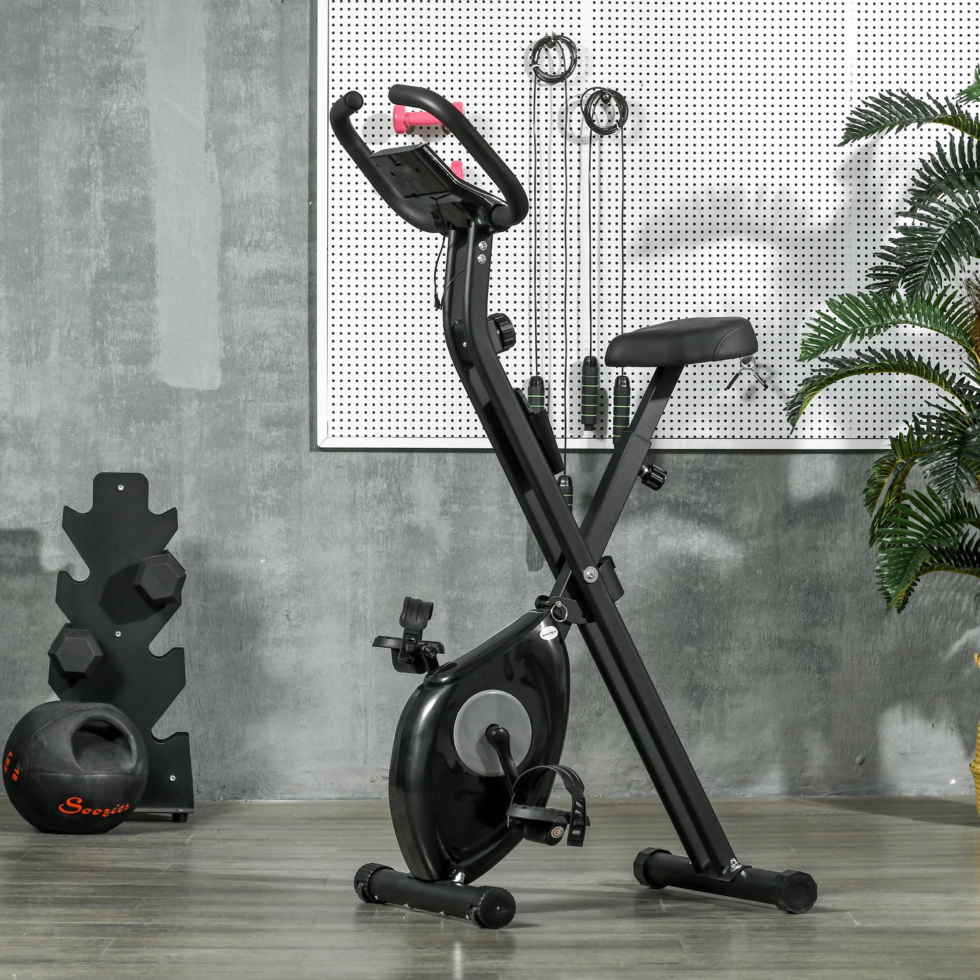 Folding Exercise Bike with 8 Levels of Magnetic Resistance Fitness Exercise Bike with LCD Display and Adjustable Seat for Home Office 43x85x109 cm Black